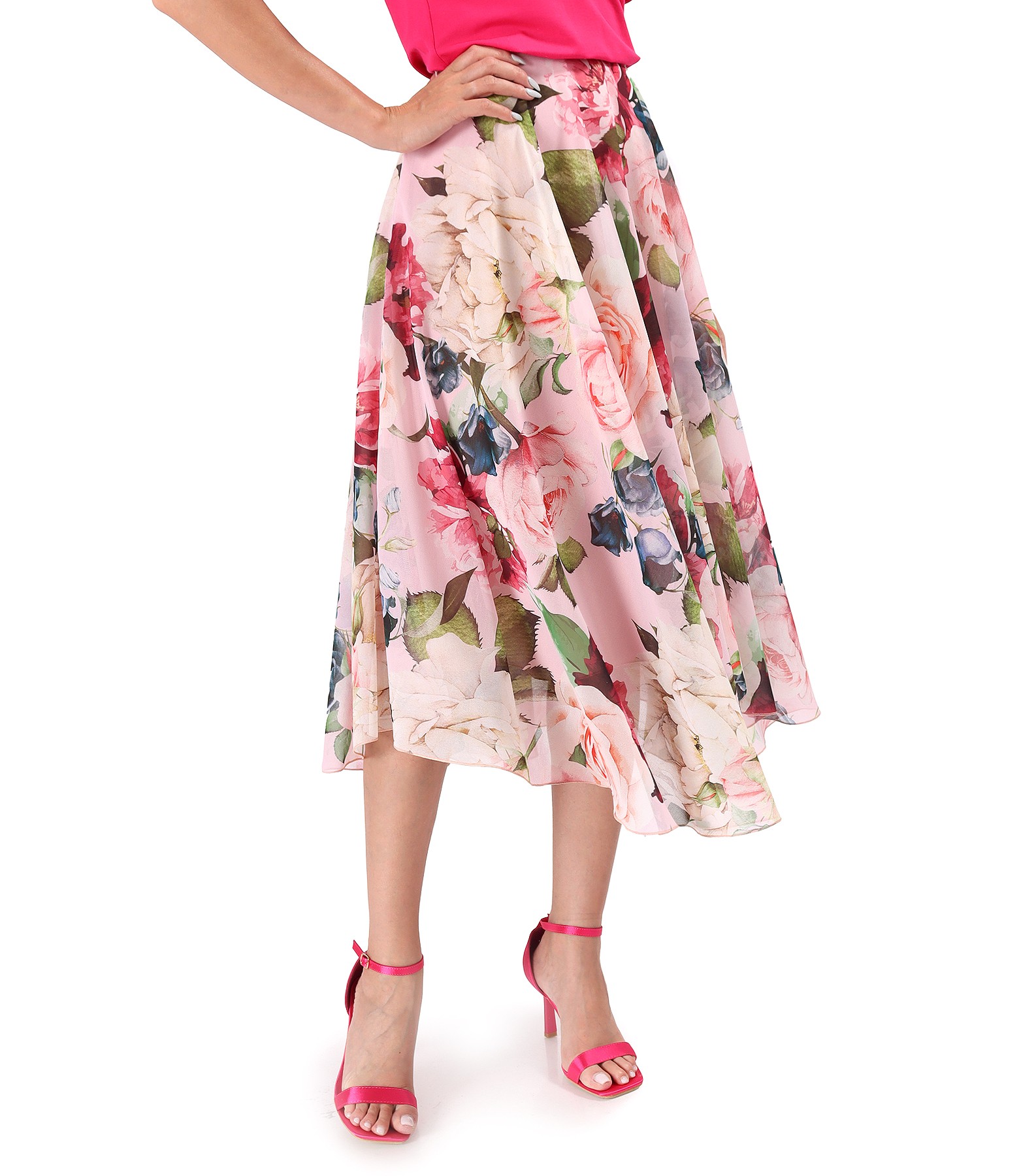 Fusta ampla din voal fin imprimat cu motive florale (Roz), marimea