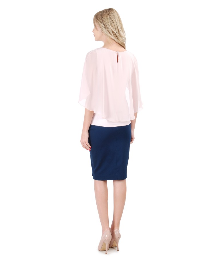 Fusta creion cu franjuri si bluza cu pelerina din voal