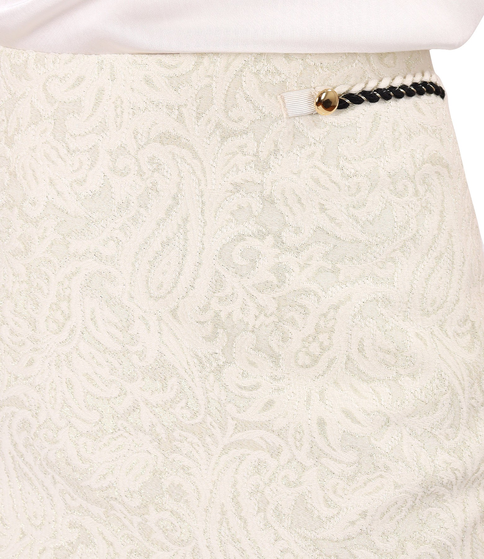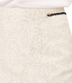 Fusta creion din brocart cu bumbac si fir de efect auriu (Alb-Ecru), marimea