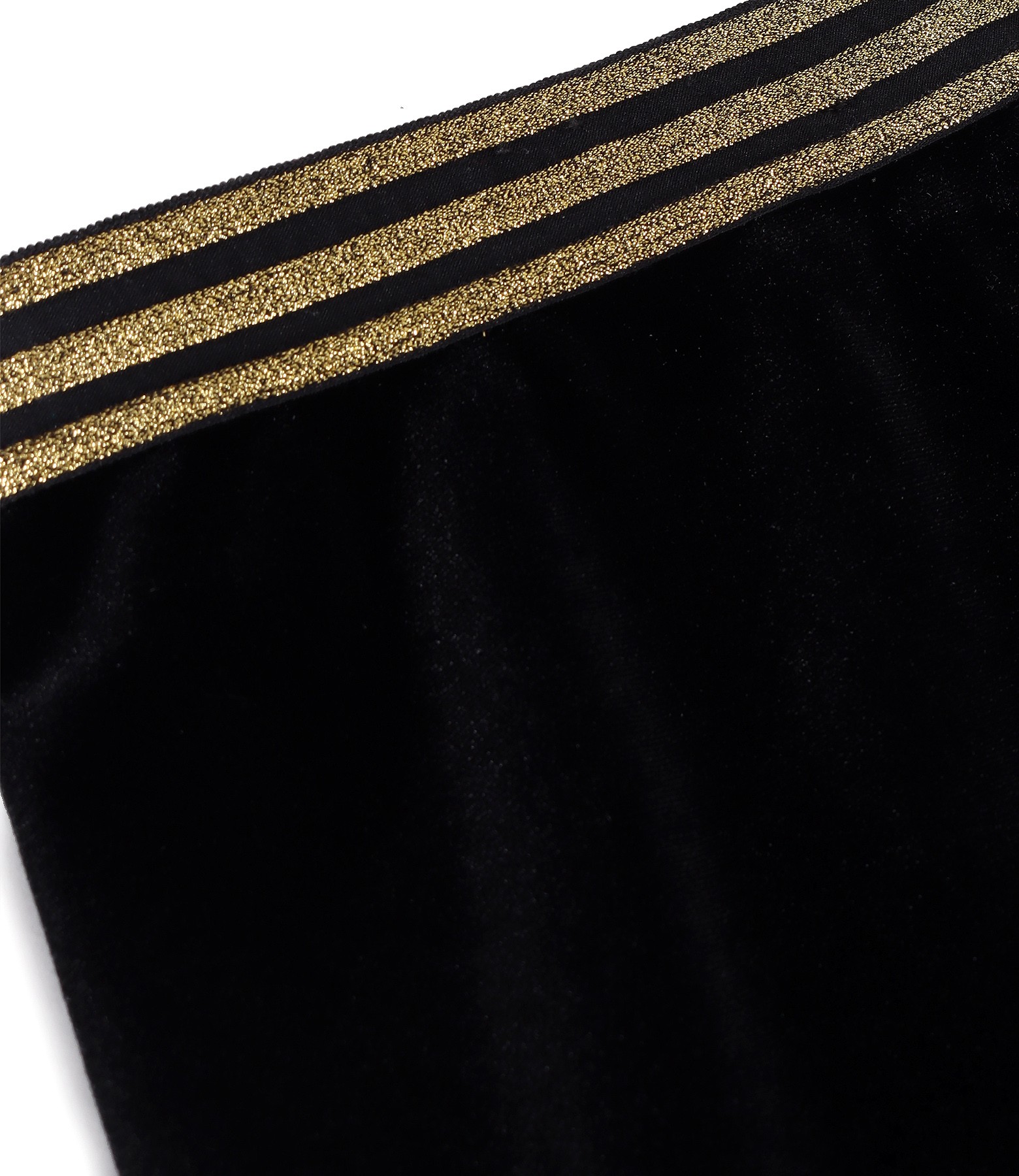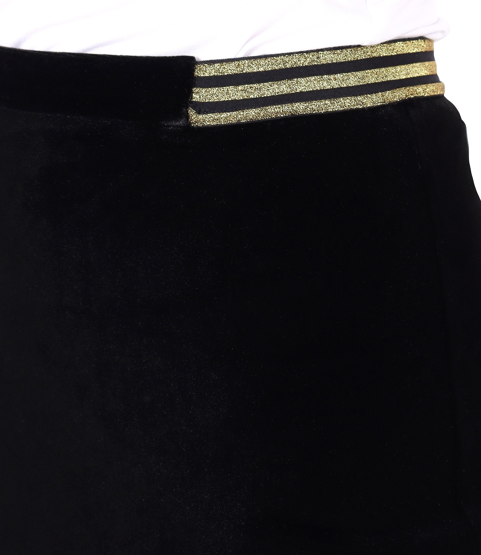 Fusta creion din catifea elastica neagra, captusita, cu elastic auriu in talie.