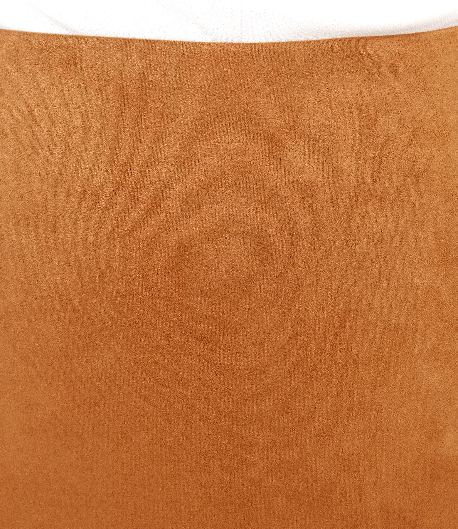 Fusta creion din stofa elastica cu aspect catifelat, captusita si fara slit. Se inchide cu fermoar ascuns pe mijloc spate.