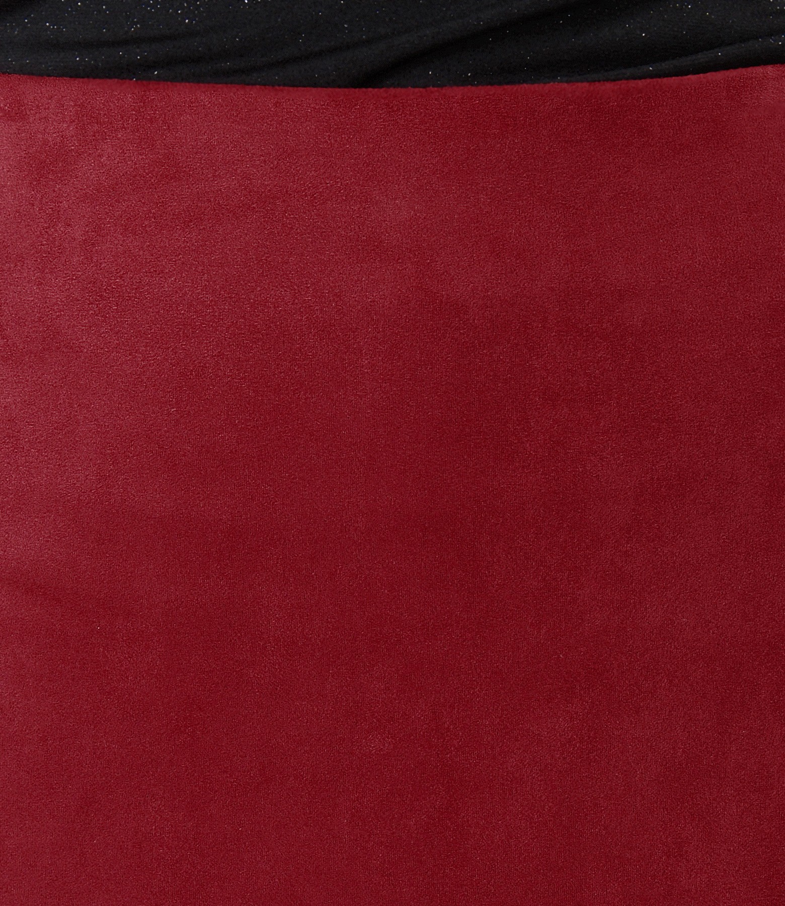 Fusta creion din stofa cu aspect catifelat (Rosu Burgund), marimea