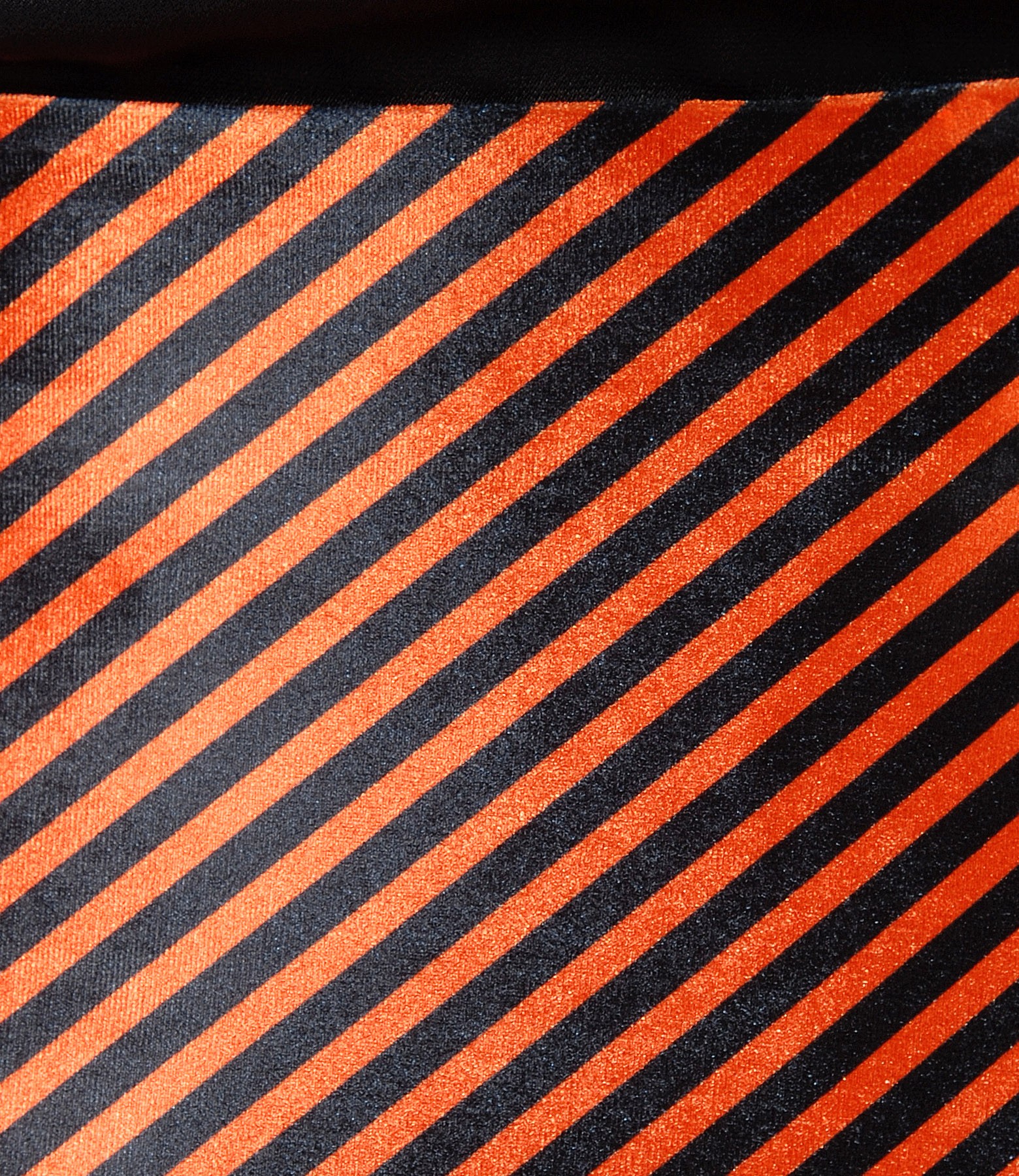 Fusta din catifea elastica cu dungi, captusita si cu fermoar pe lateral.
