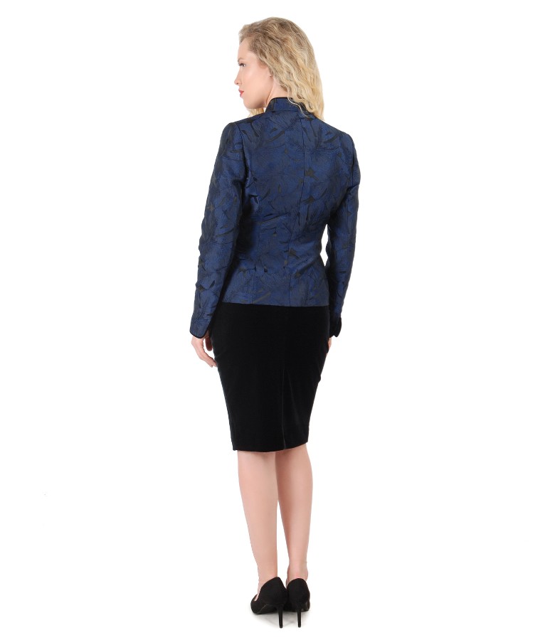 Fusta din catifea elastica si sacou din brocart cu motive florale