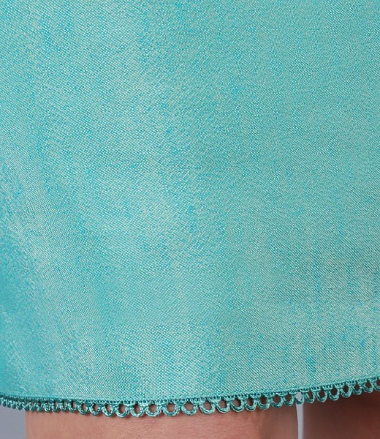 Fusta din in si viscoza turquoise cu garnitura (Turquoise), marimea