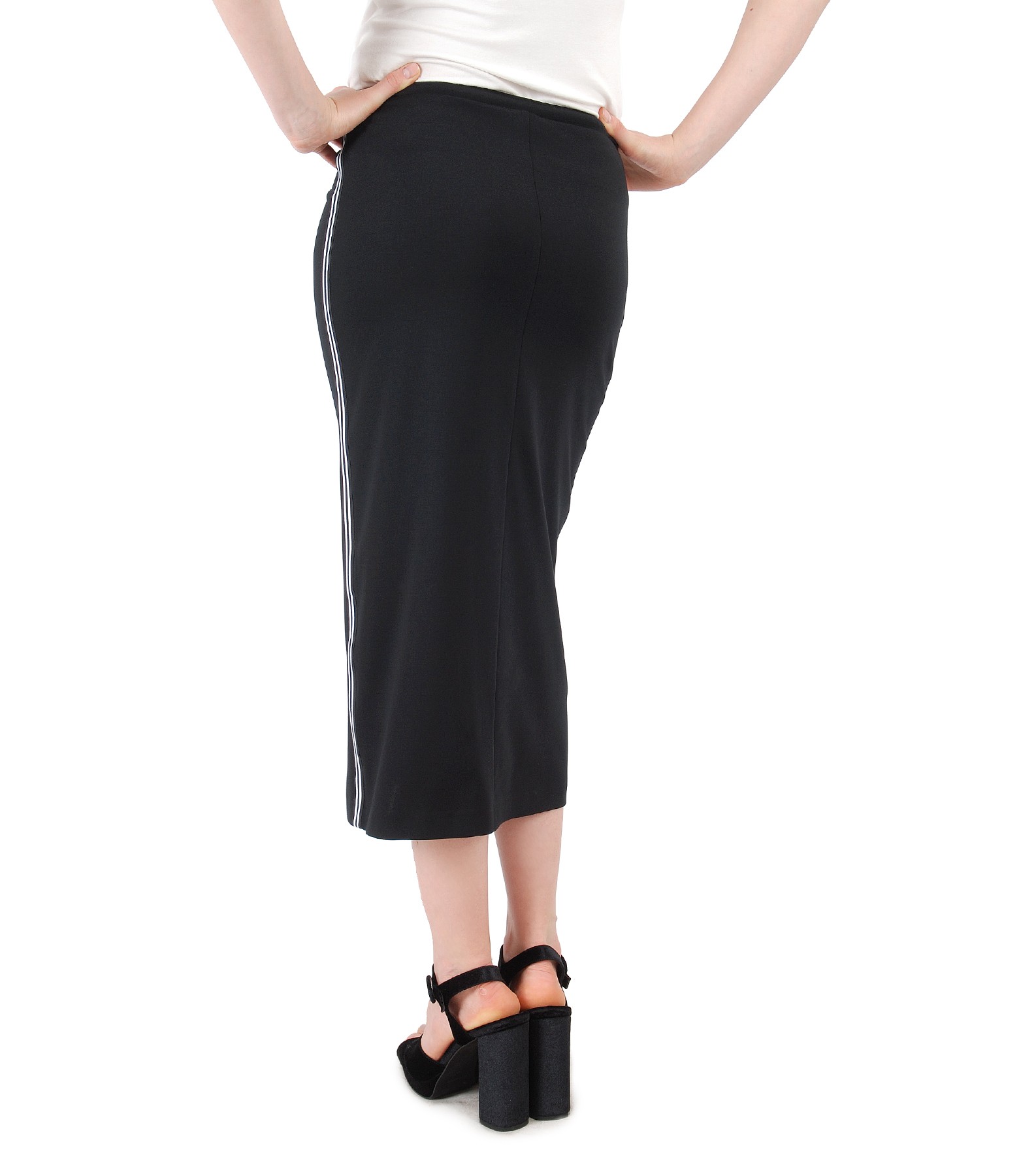 Fusta dreapta midi din jerse elastic cu vipusca dungi (Negru), marimea