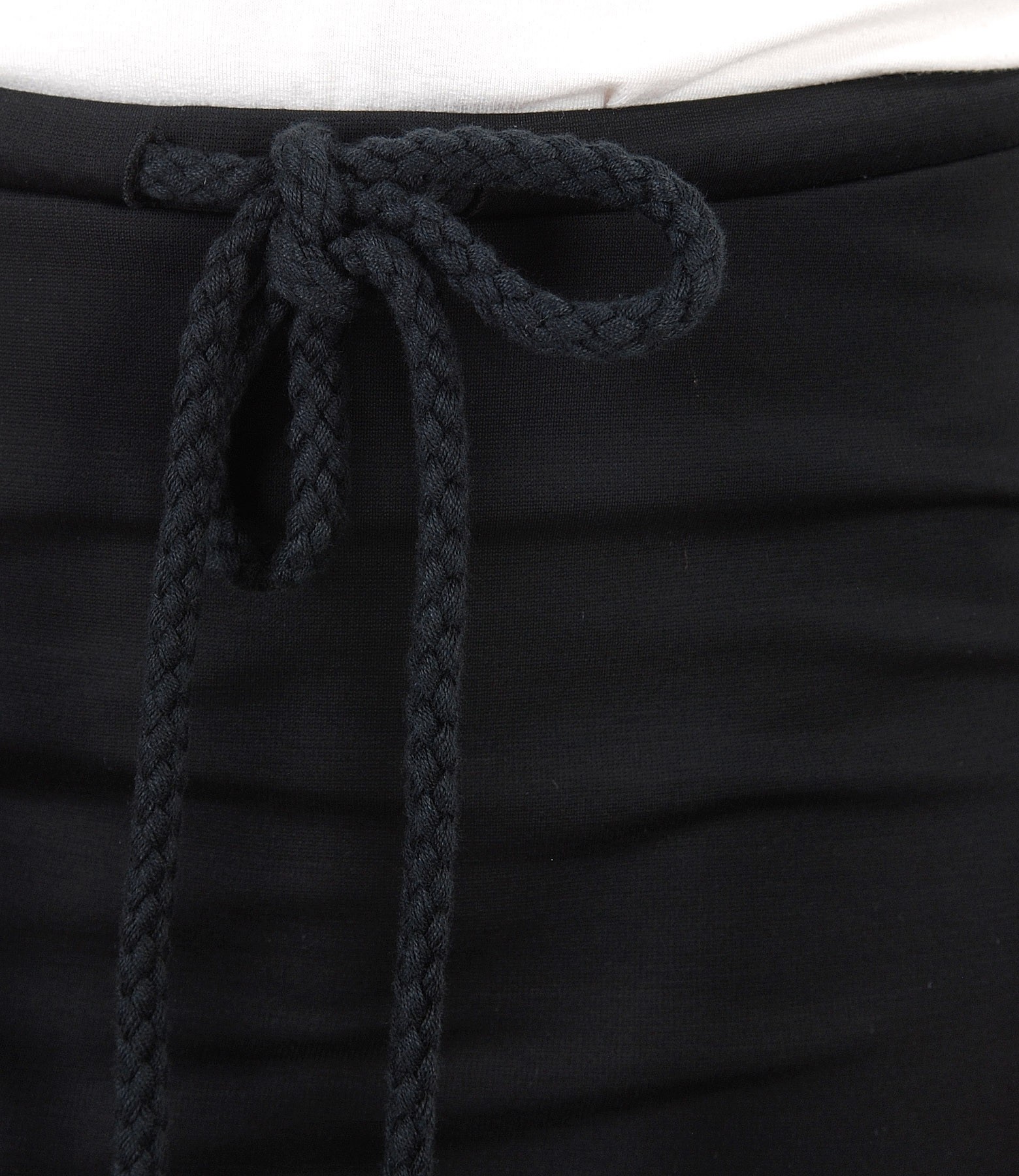Fusta dreapta midi din jerse elastic uni, necaptusita, cu vipusca de elastic in dungi pe laterale si snur in talie.