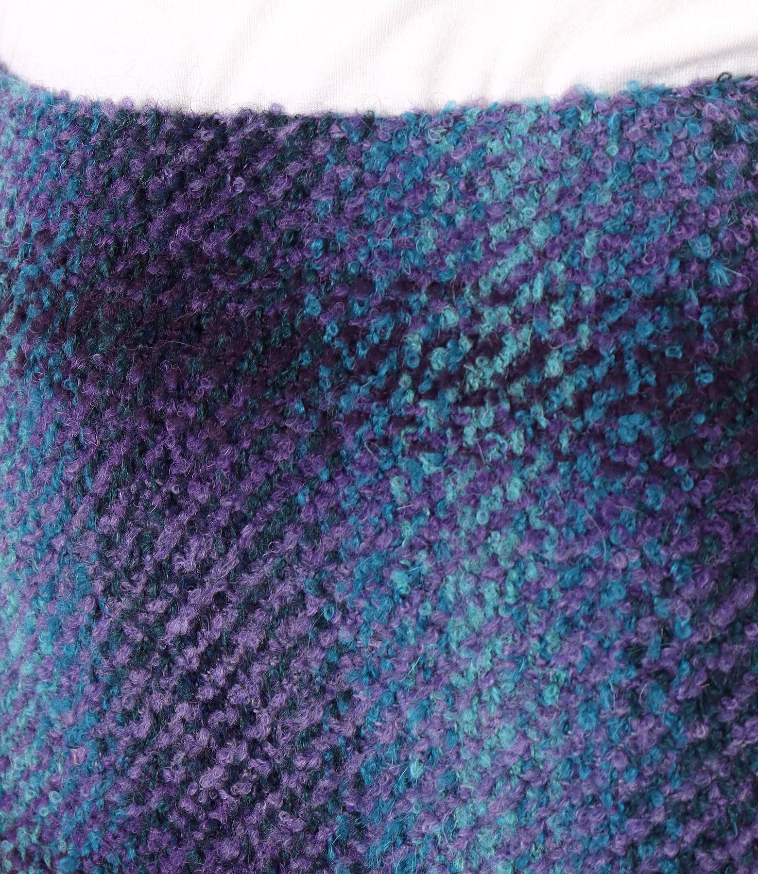 Fusta eleganta din bucle gros multicolor cu lana si alpaca, captusita si cu slit petrecut pe mijloc spate. Se inchide cu fermoar ascuns pe mijloc spate.