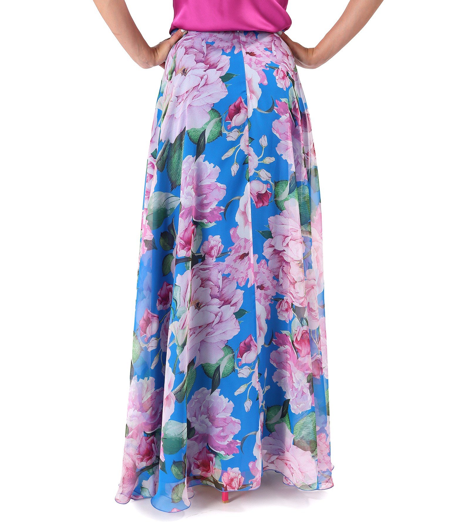 Fusta eleganta lunga din voal fin imprimat cu motive florale