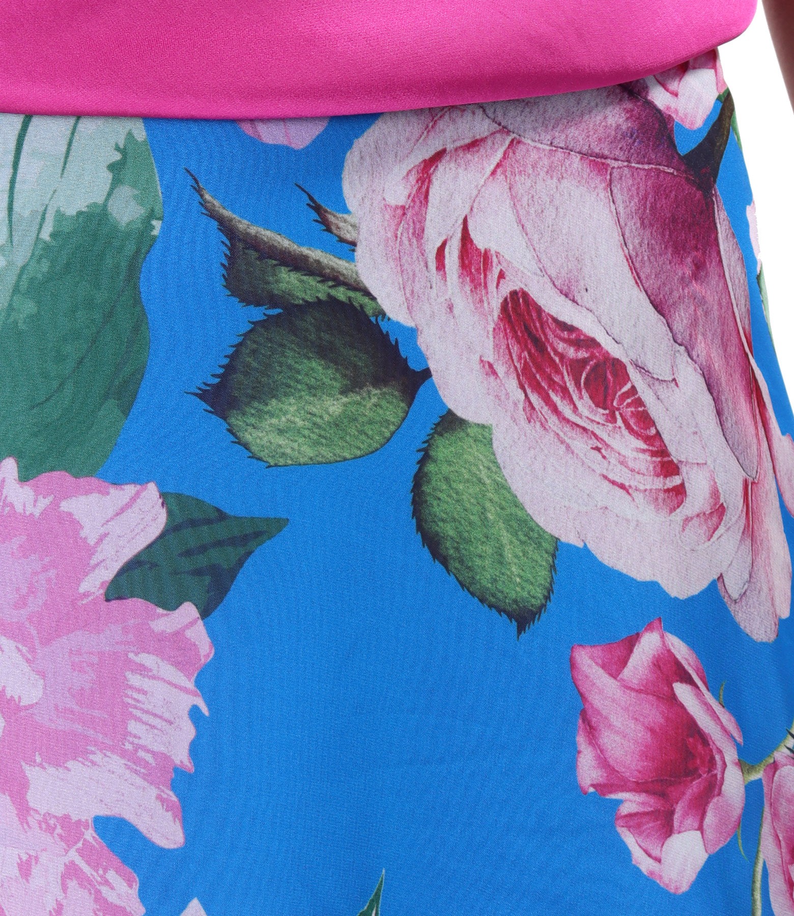 Fusta eleganta lunga din voal fin imprimat cu motive florale (Albastru), marimea