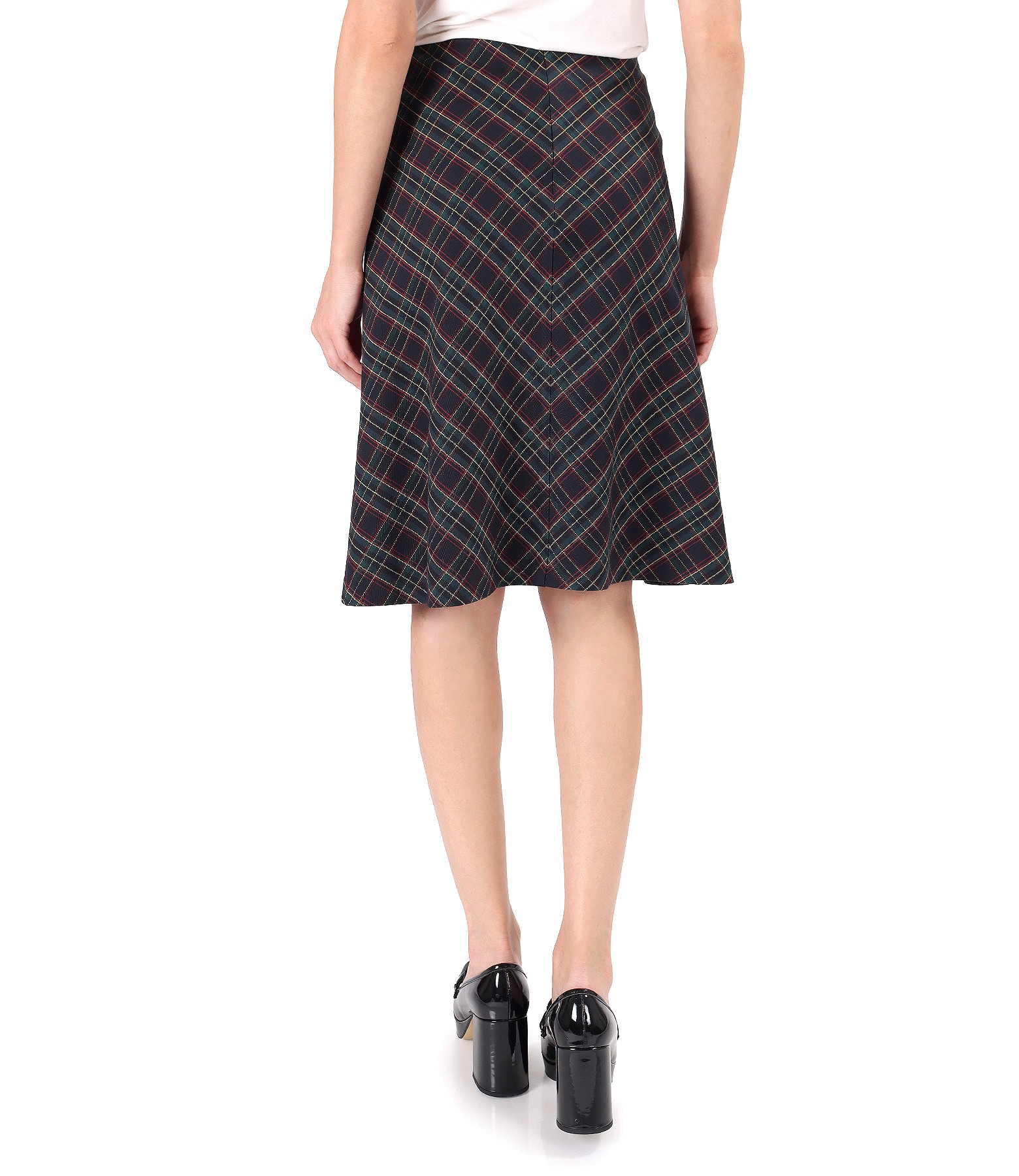Fusta evazata din stofa cu viscoza in carouri (Verde), marimea