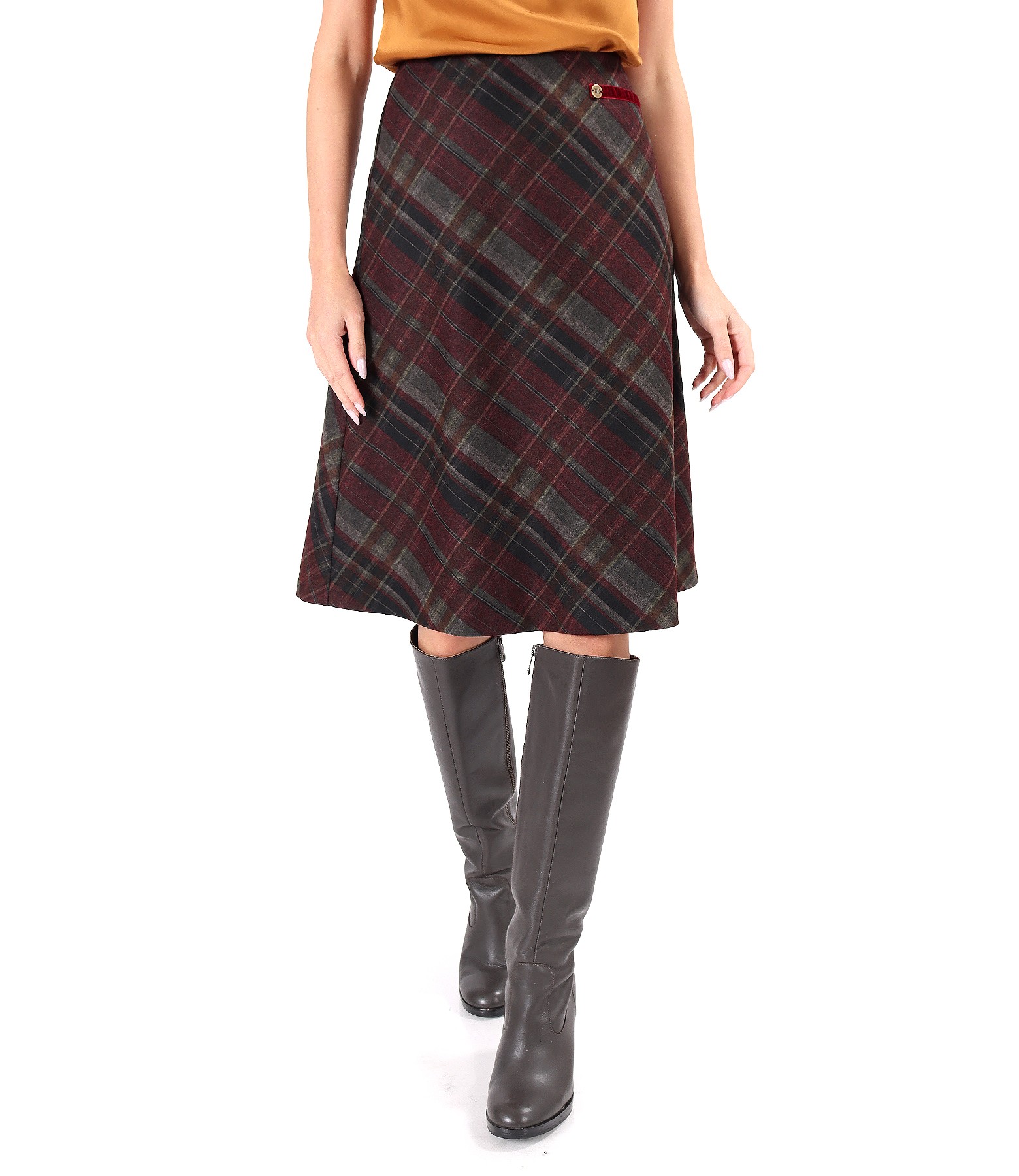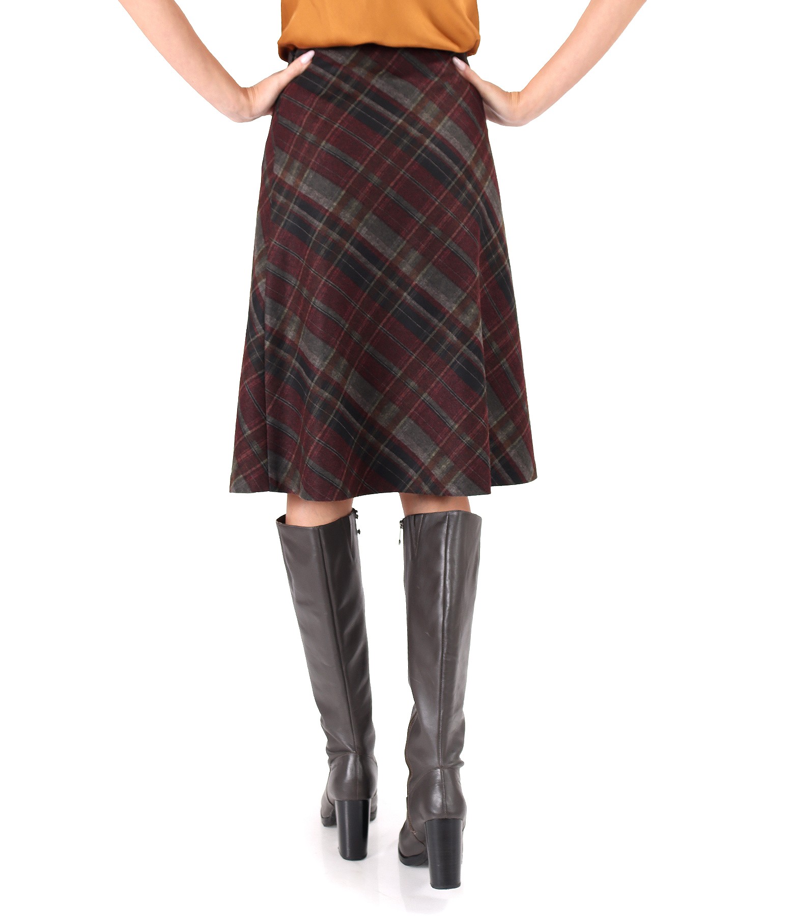 Fusta evazata din stofa cu viscoza in carouri