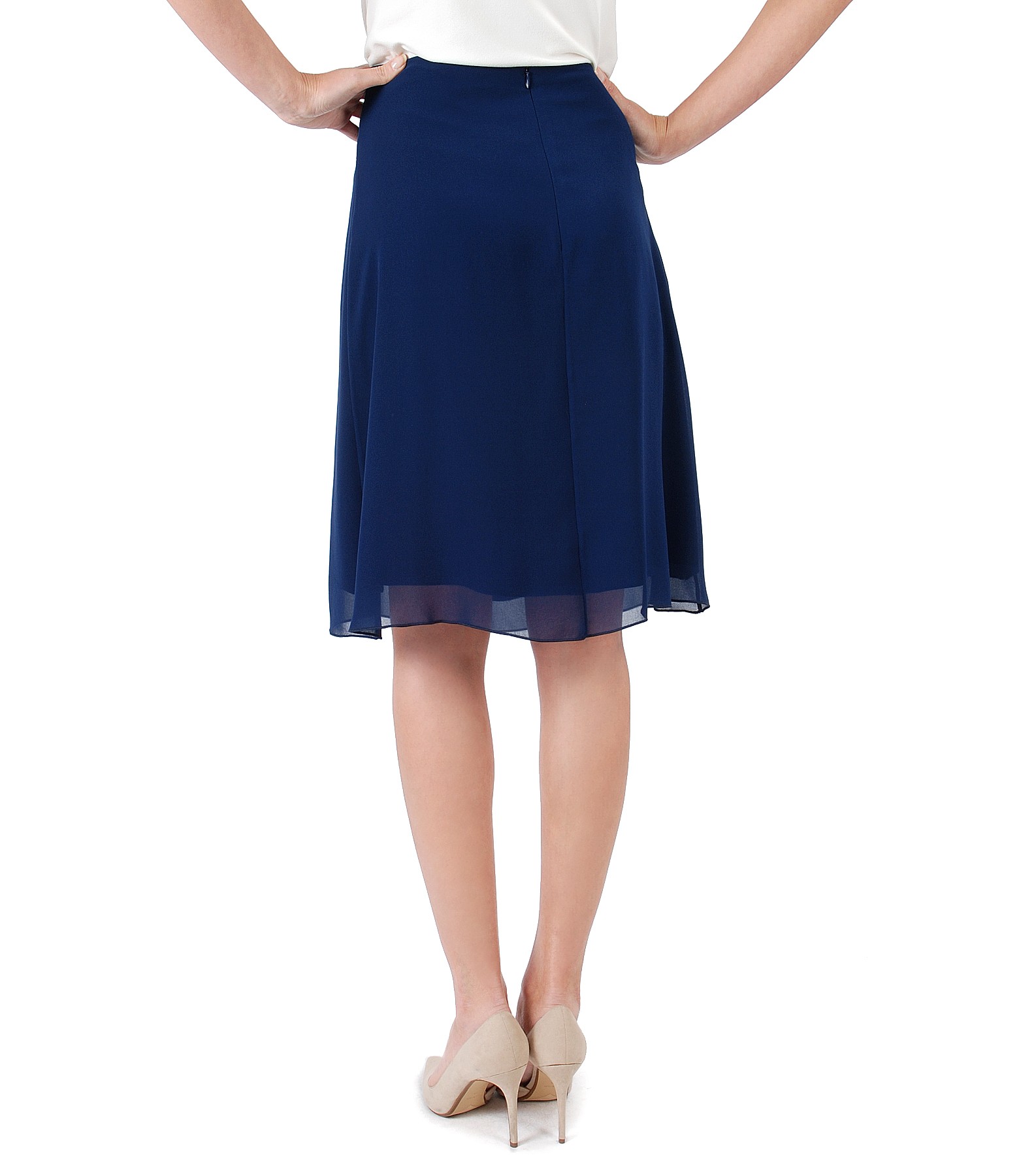 Fusta evazata din voal uni, dublata cu viscoza in ton. Se inchide cu fermoar ascuns pe mijloc spate.