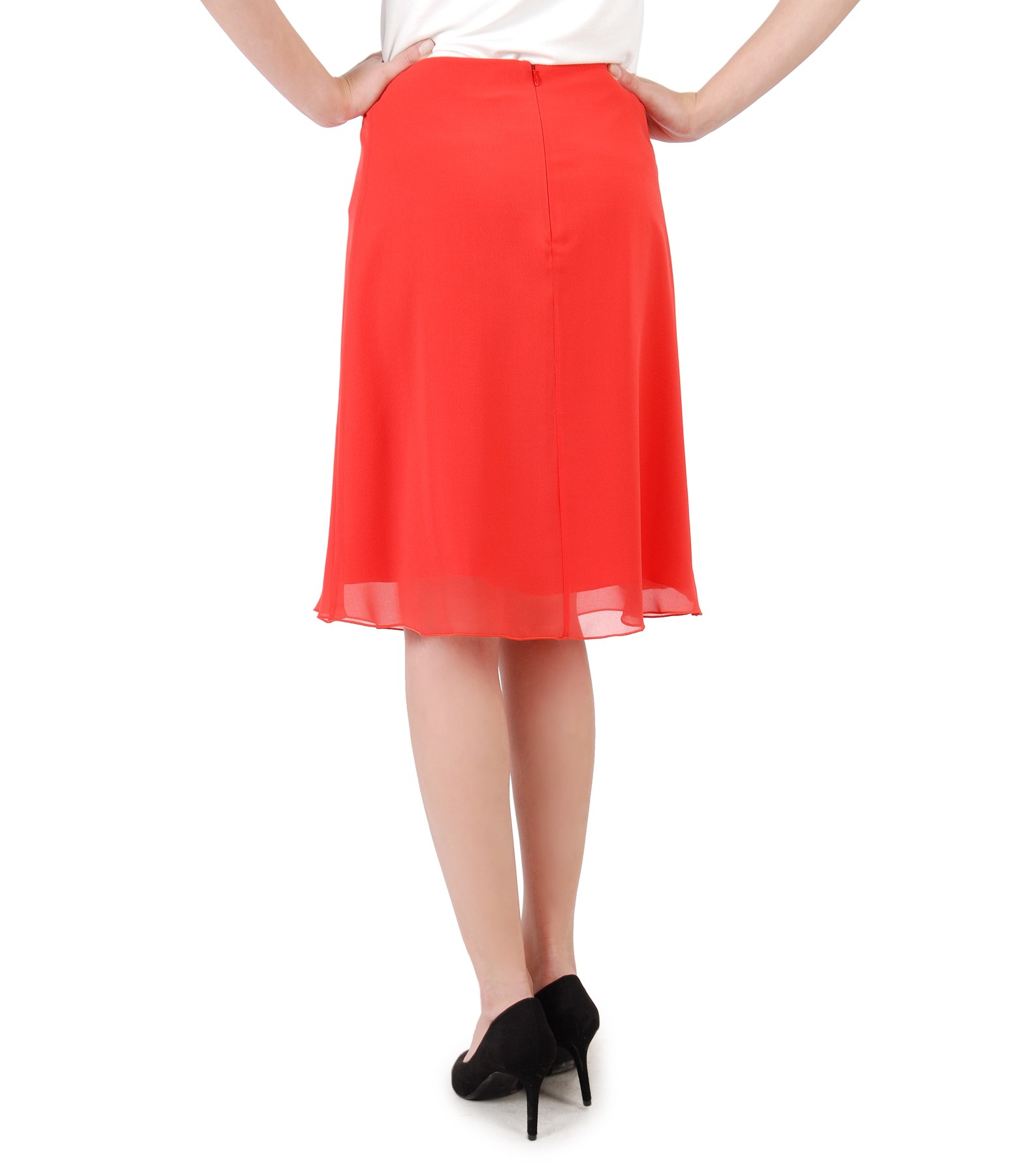 Fusta evazata din voal uni, dublata cu viscoza in ton. Se inchide cu fermoar ascuns pe mijloc spate.