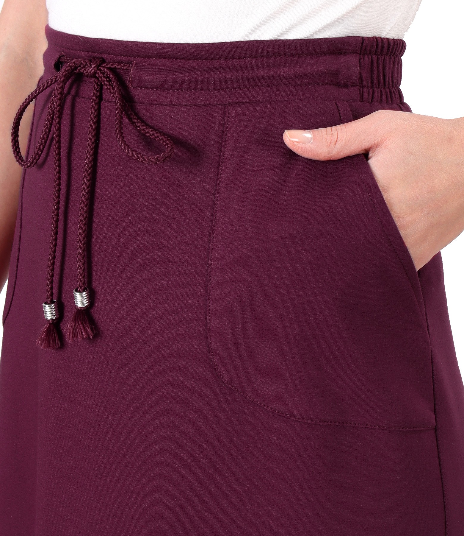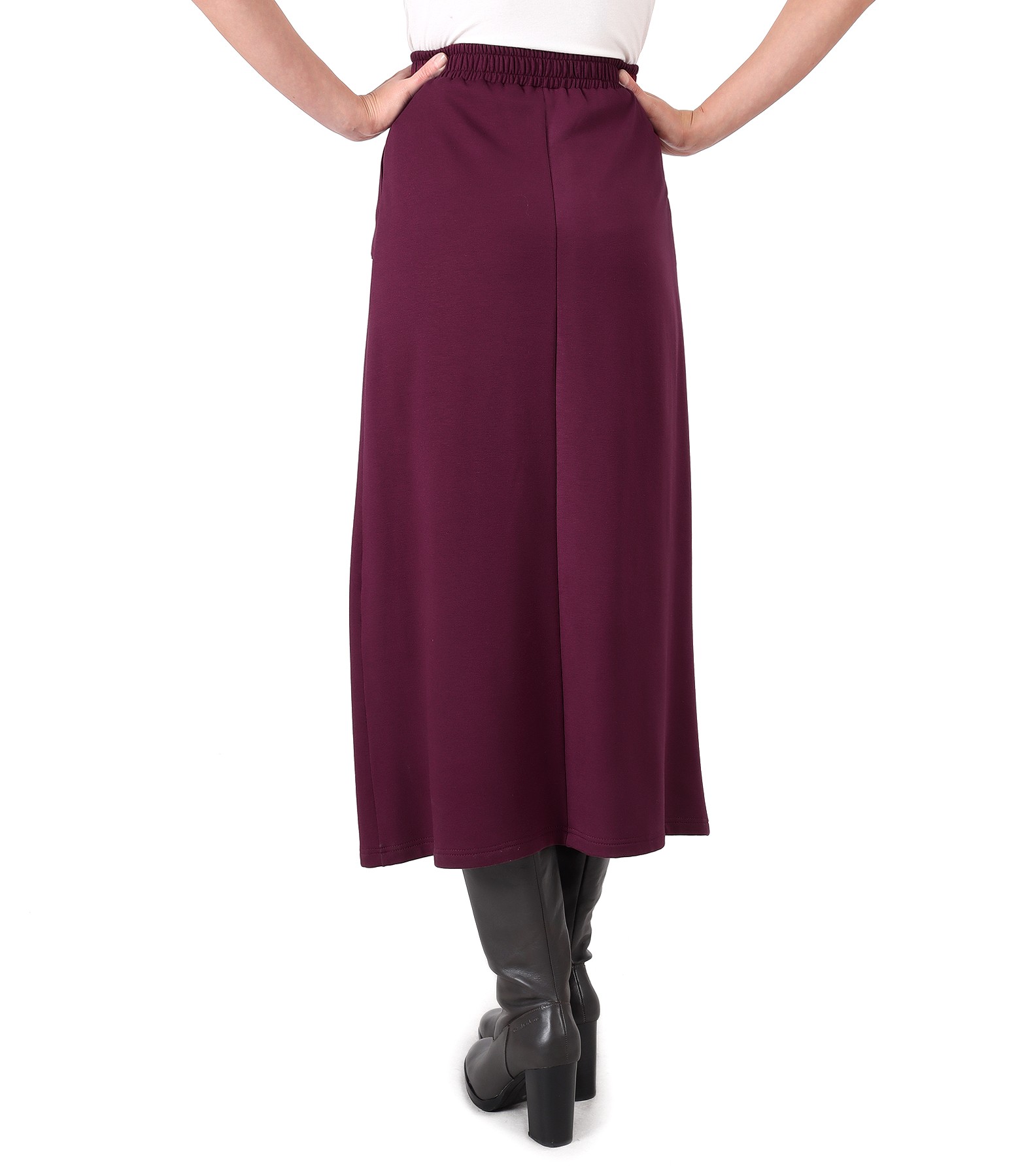 Fusta casual din jerse elastic flausat din viscoza, necaptusita, cu buzunare laterale si elastic cu snur in talie.
