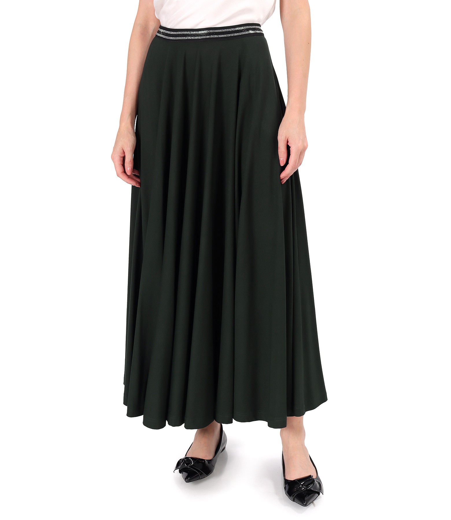 Fusta lunga clos din jerse elastic de viscoza (Verde pin), marimea