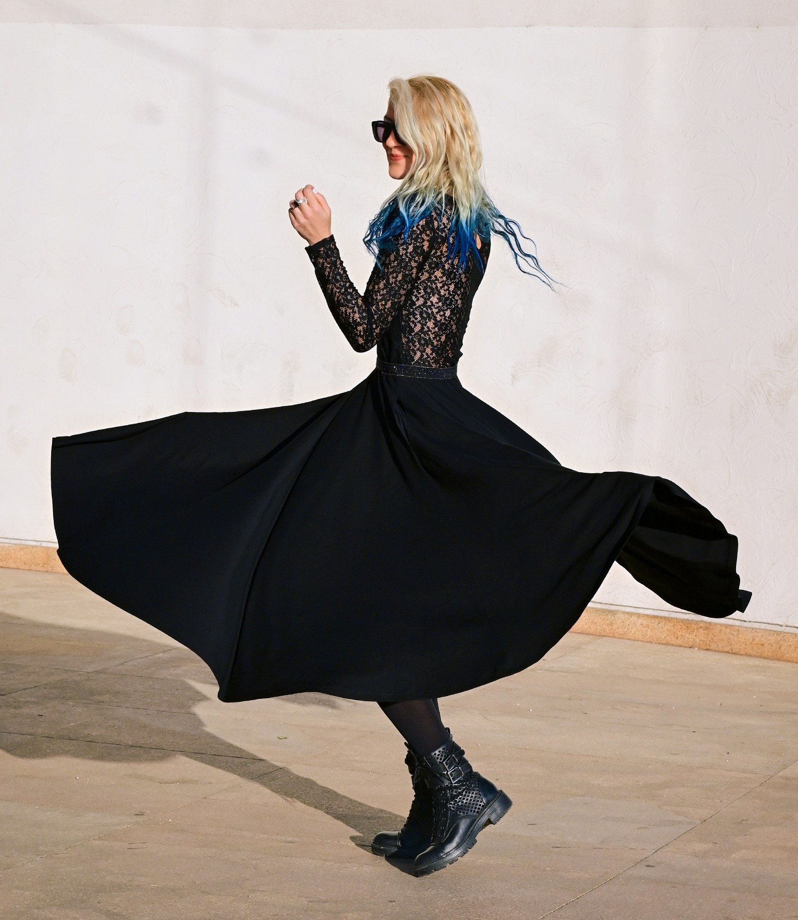 Fusta lunga clos din jerse elastic de viscoza (Negru), marimea