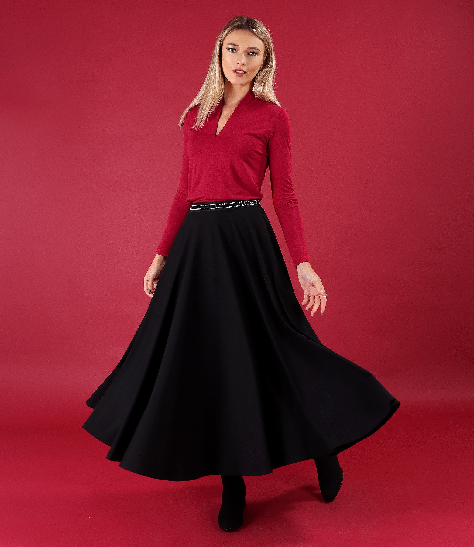 Fusta lunga clos din jerse plin elastic de viscoza (Negru), marimea