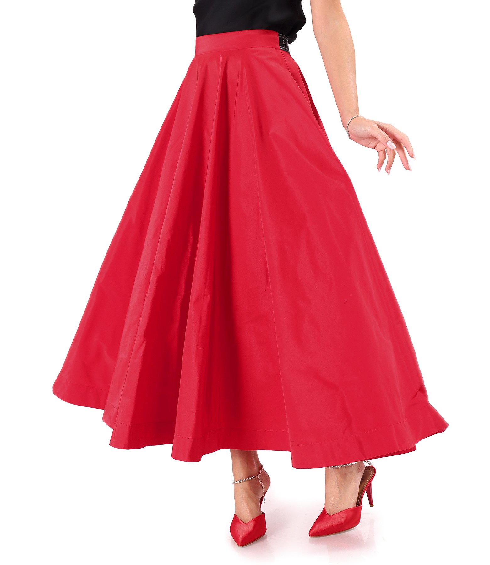 Fusta lunga clos din tafta cu elastic decorativ pe spate (Rosu), marimea