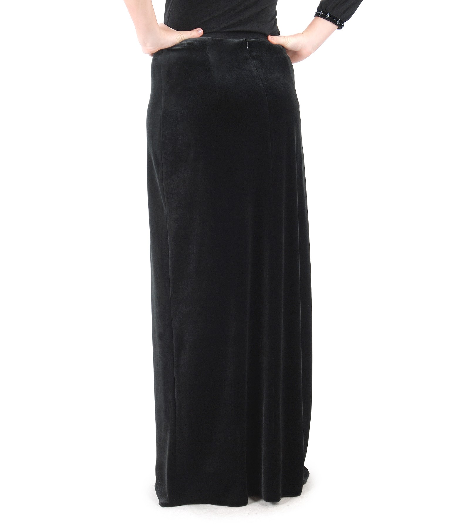 Fusta captusita, din catifea elastica, evazata si cu talie inalta. Se inchide cu fermoar ascuns pe mijloc spate.