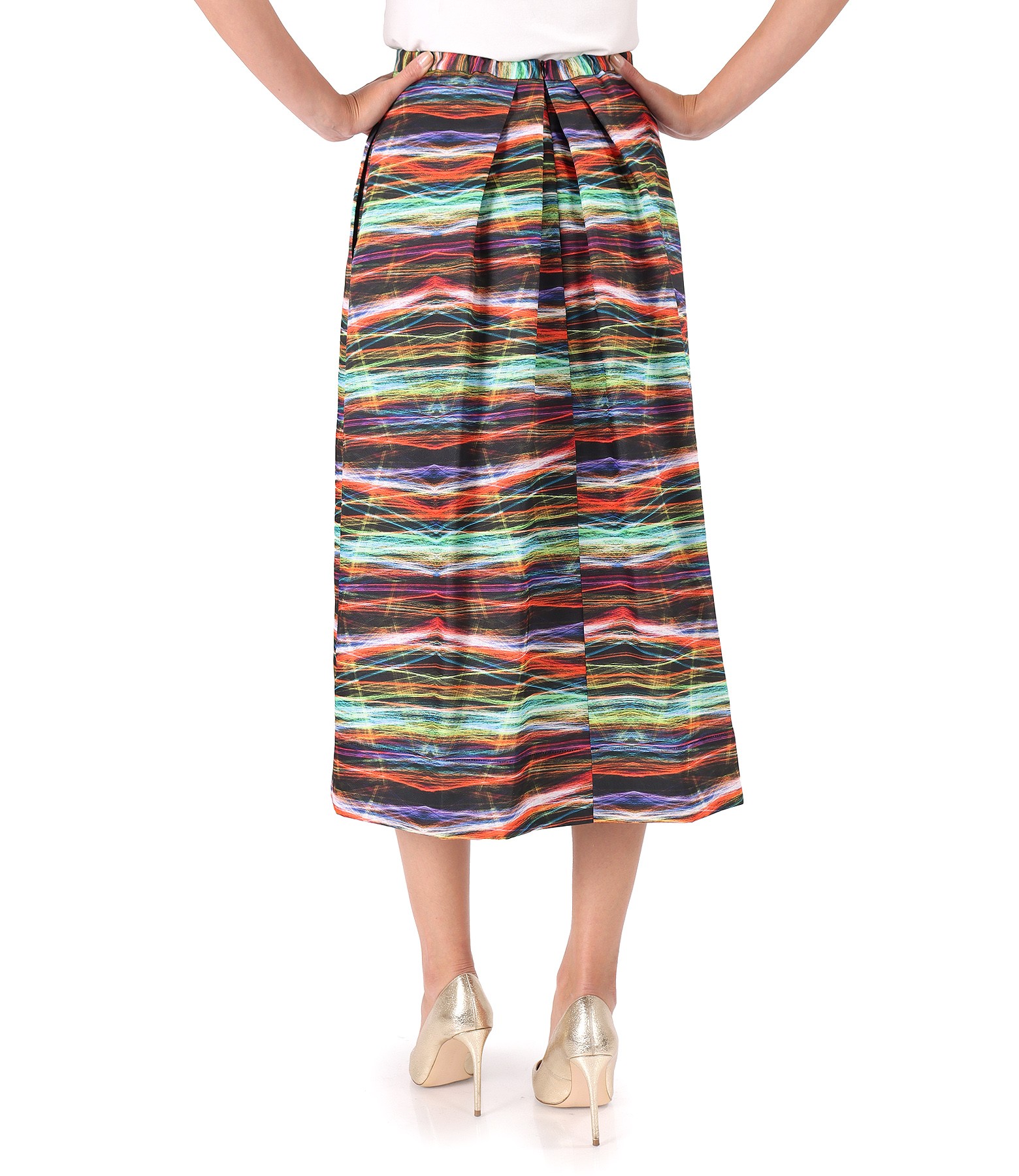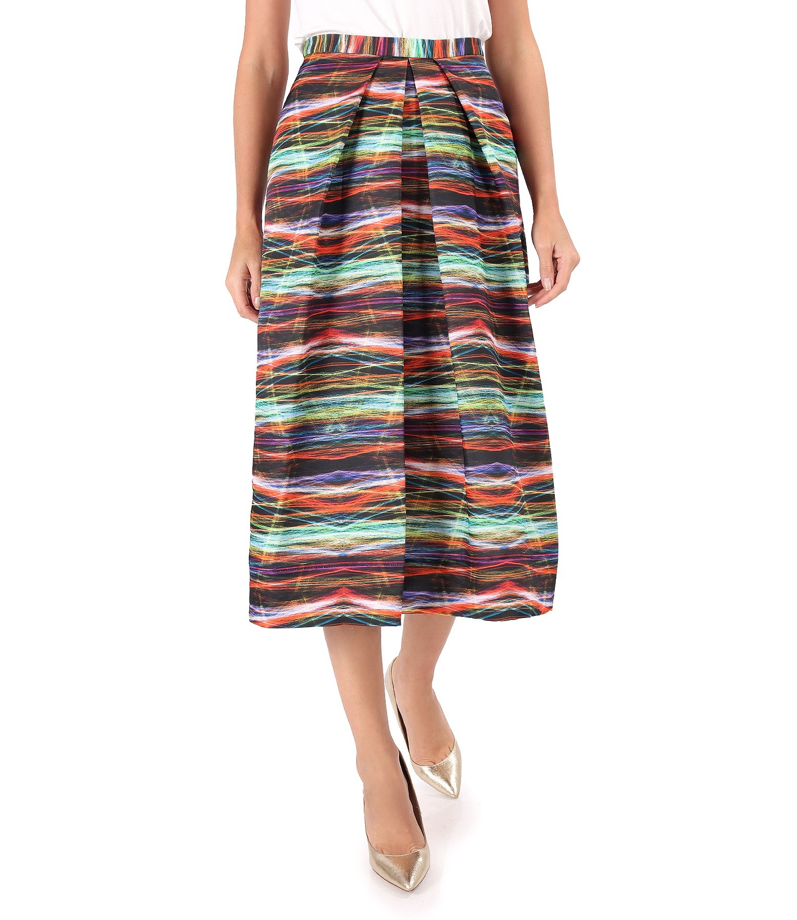 Fusta midi din stofa ripsata cu efect satinat (Imprimeu), marimea