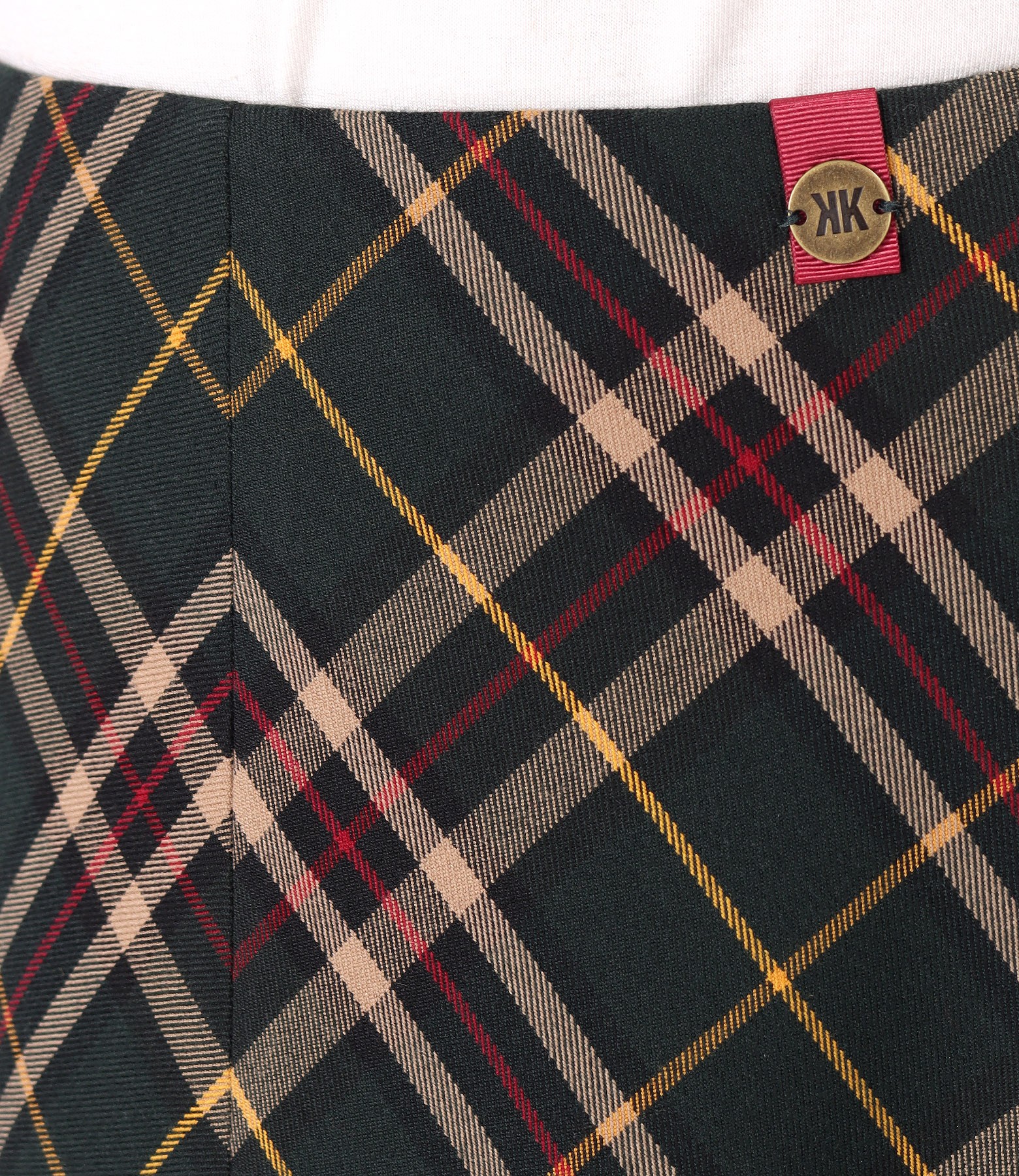 Fusta midi evazata din stofa elastica cu viscoza in carouri. Se inchide cu fermoar ascuns pe mijloc spate.