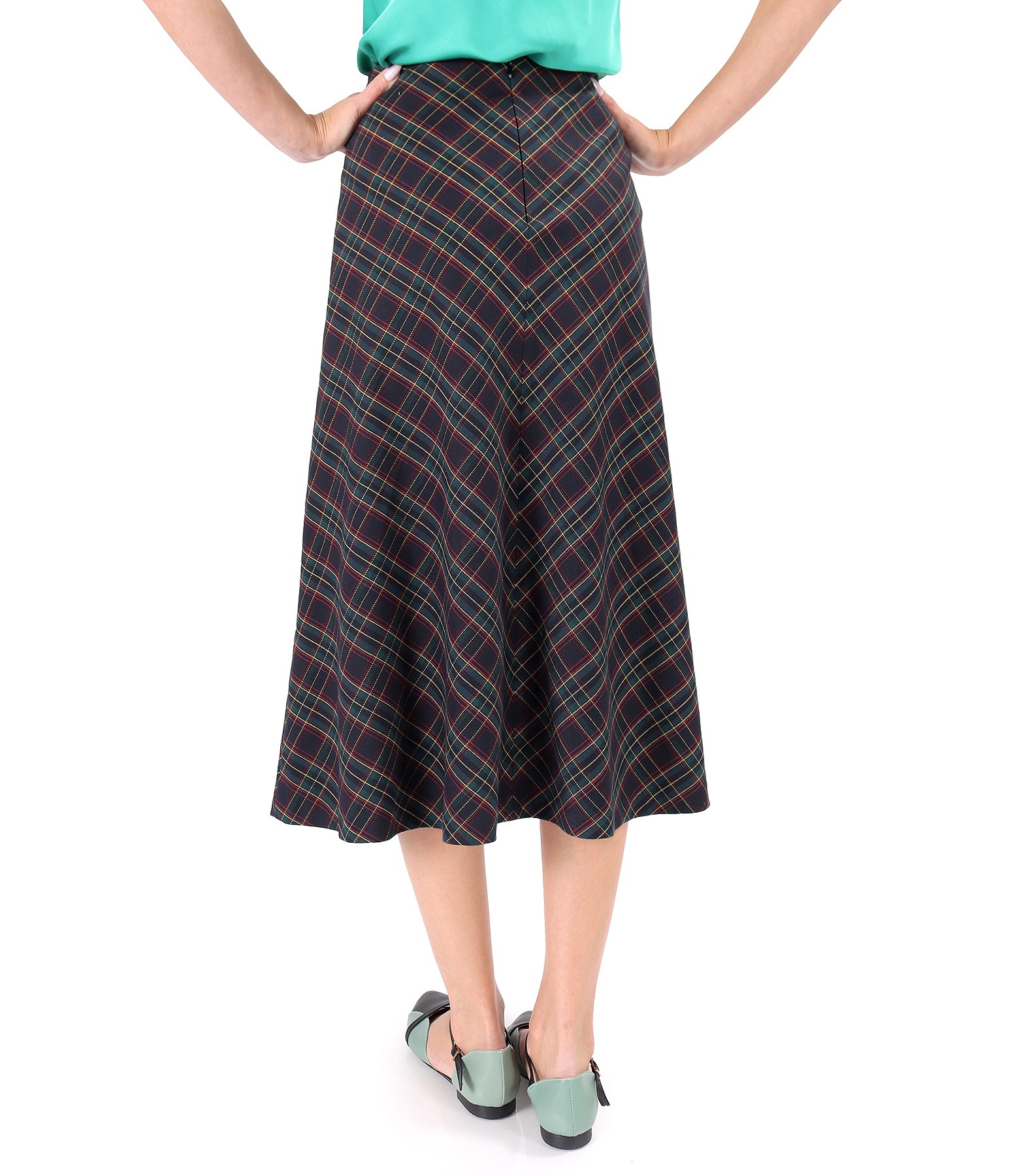 Fusta midi evazata in carouri (Verde), marimea