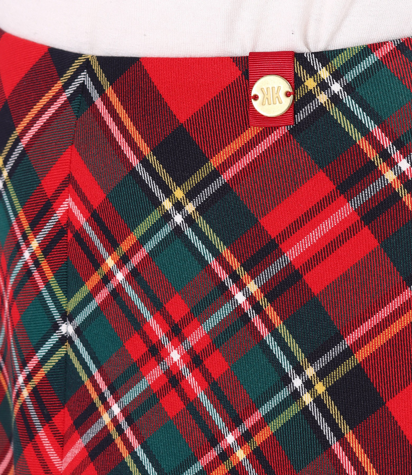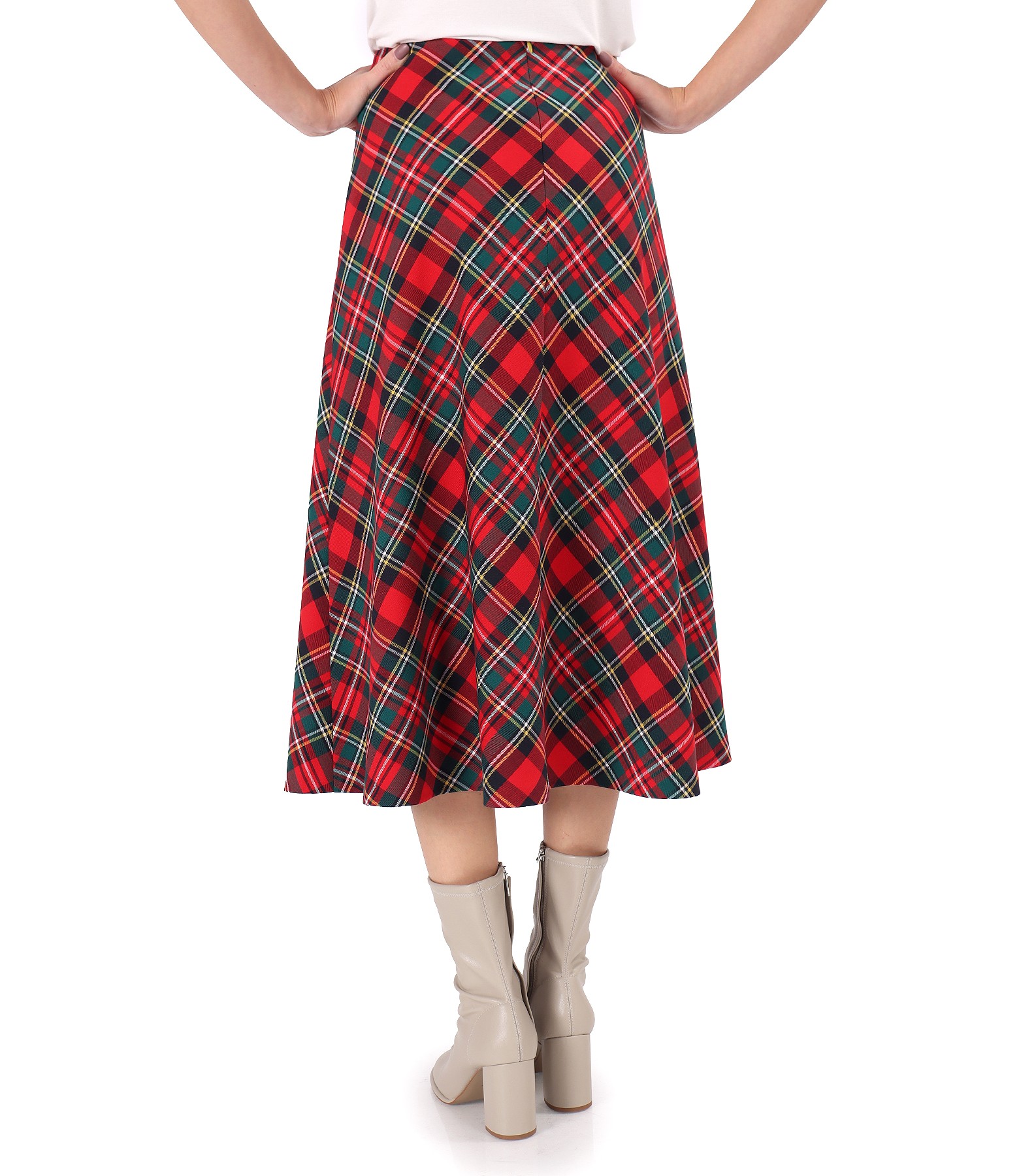 Fusta midi evazata din stofa elastica cu viscoza in carouri. Se inchide cu fermoar ascuns pe mijloc spate.