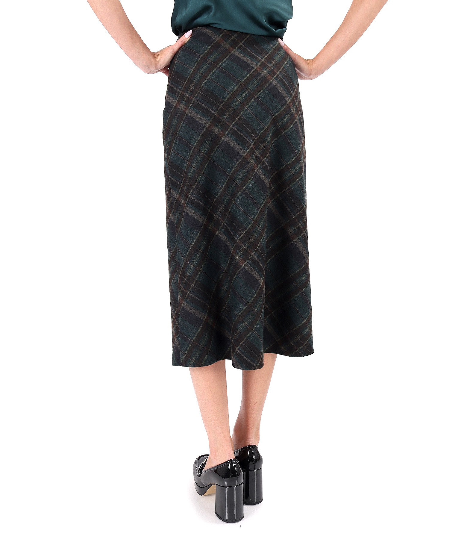 Fusta midi evazata in carouri (Verde Pin), marimea
