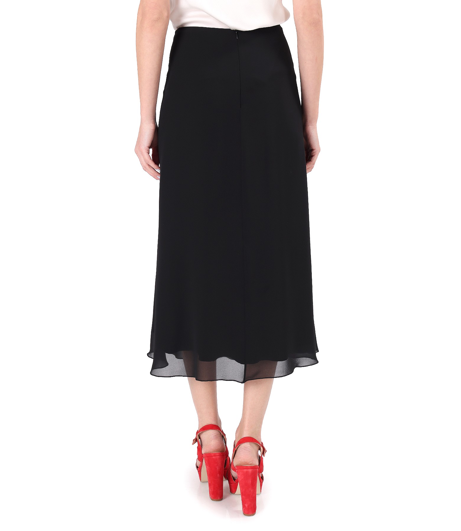 Fusta midi semiclos din voal uni, dublata cu viscoza. Se inchide cu fermoar ascuns pe mijloc spate.