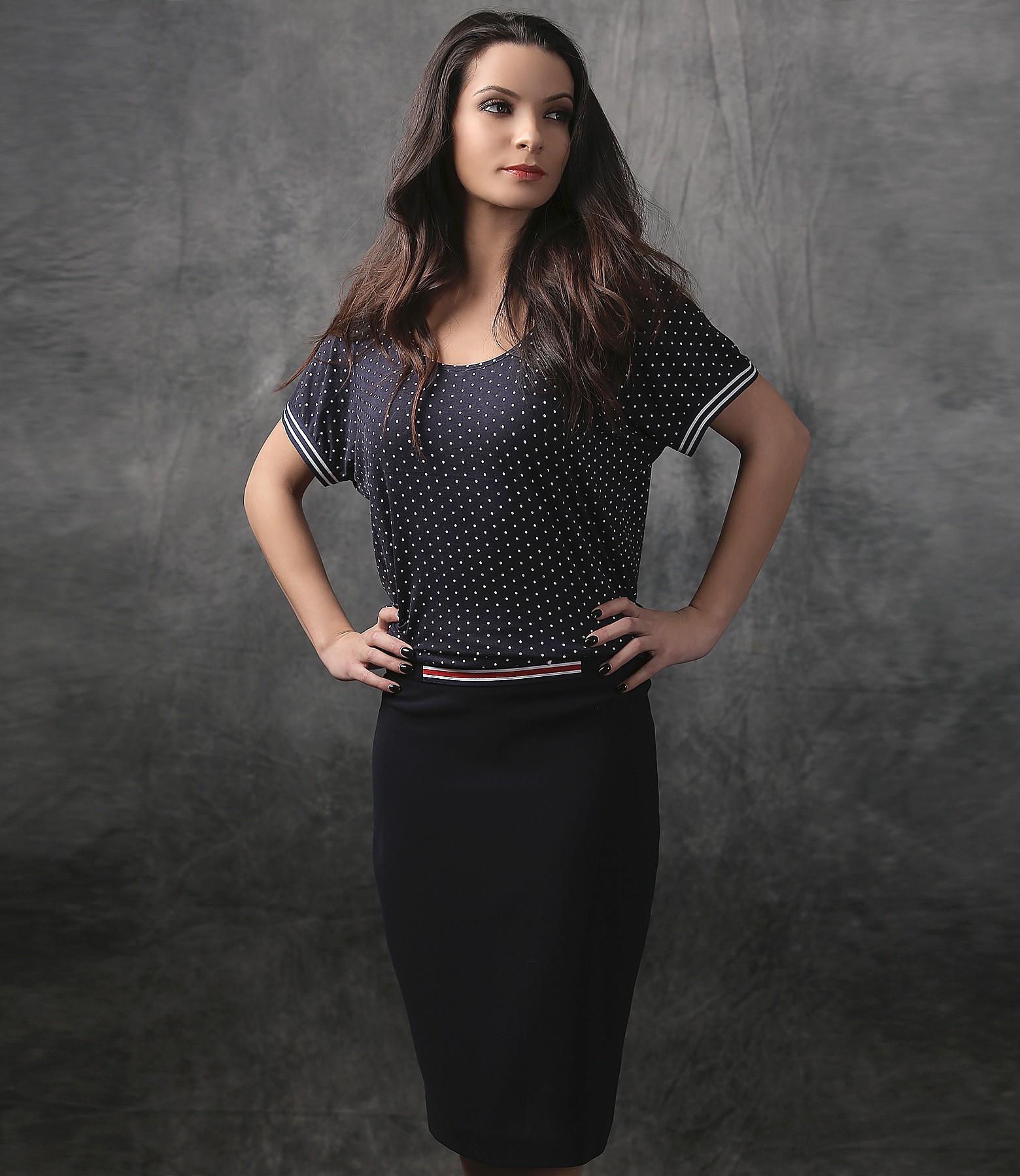 Fusta office cu elastic in talie (Bleumarin), marimea