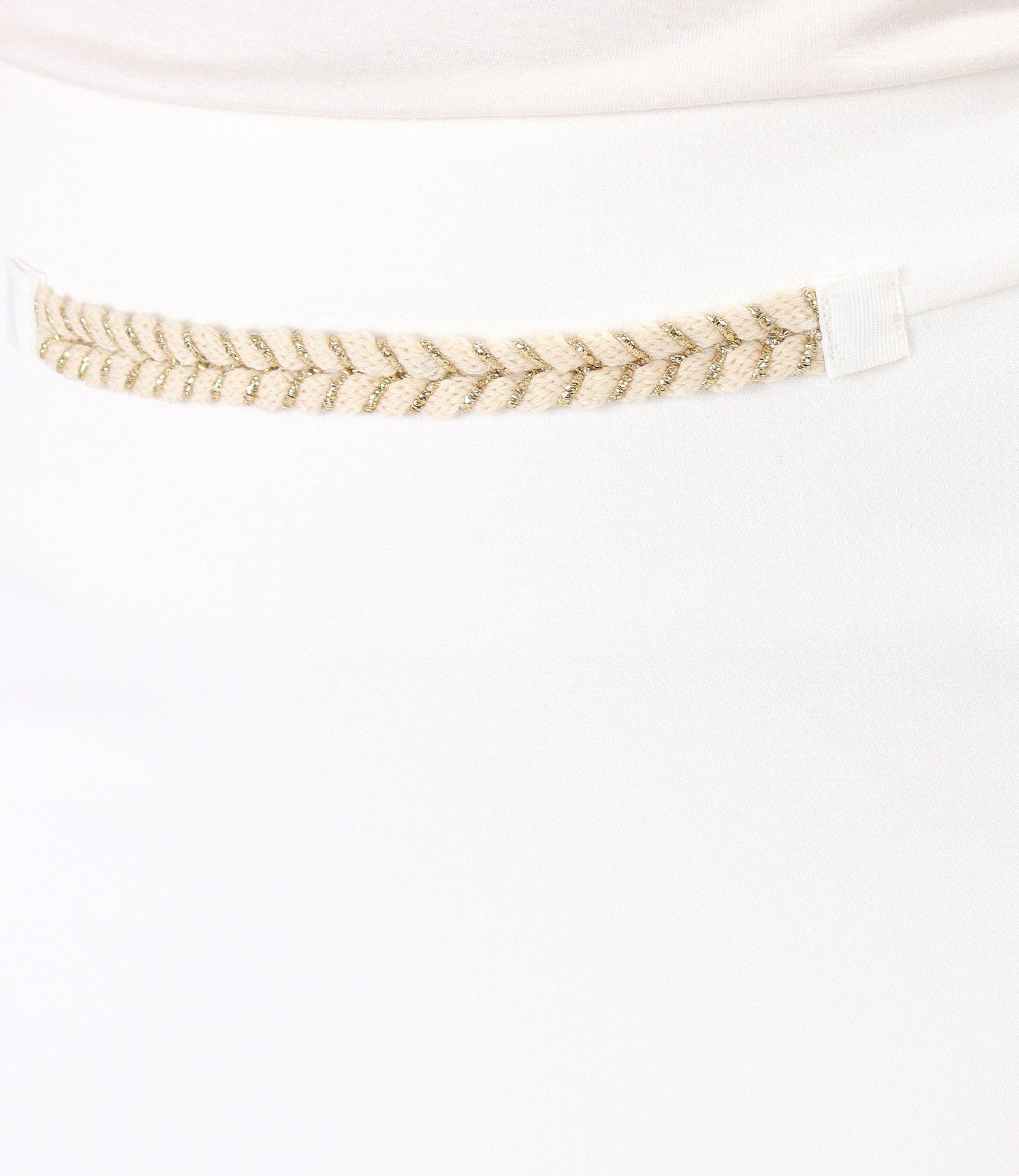Fusta office cu pasmanterie in talie (Alb-Ecru), marimea