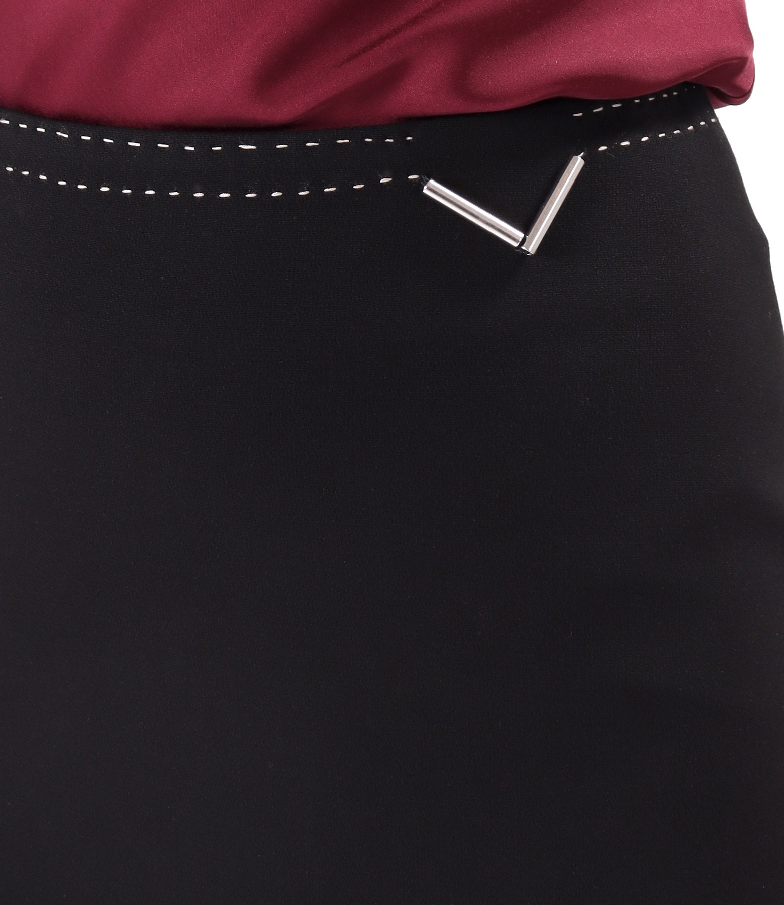 Fusta office din stofa elastica cu viscoza, captusita, cu cusatura decorativa in contrast si cu ornamenmt in talie. Are slit petrecut pe mijloc spate. Se inchide cu fermoar ascuns pe mijloc spate.