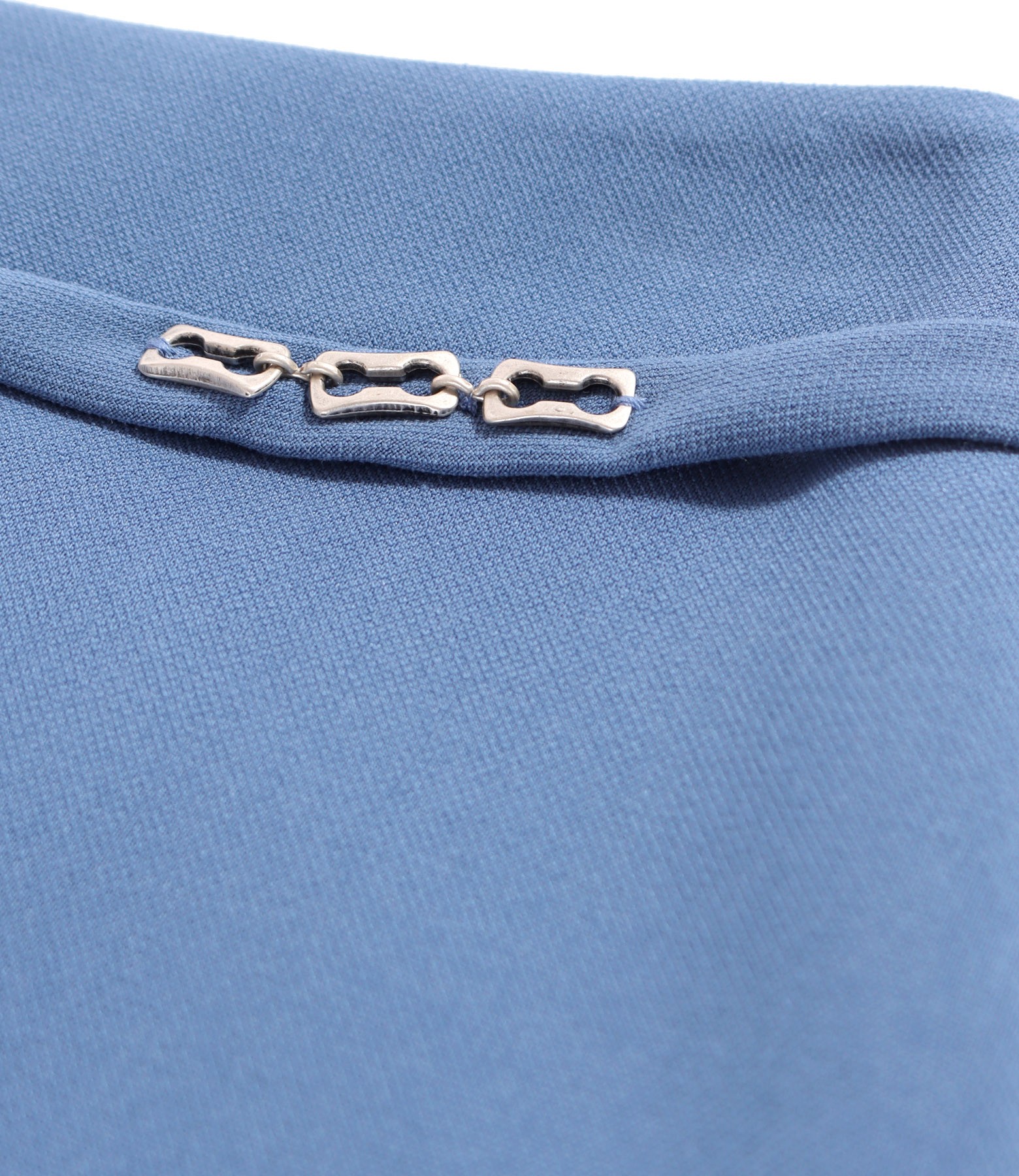Fusta scurta evazata din stofa elastica cu viscoza, cu ornament argintiu in talie. Se inchide cu fermoar ascuns pe mijloc spate.