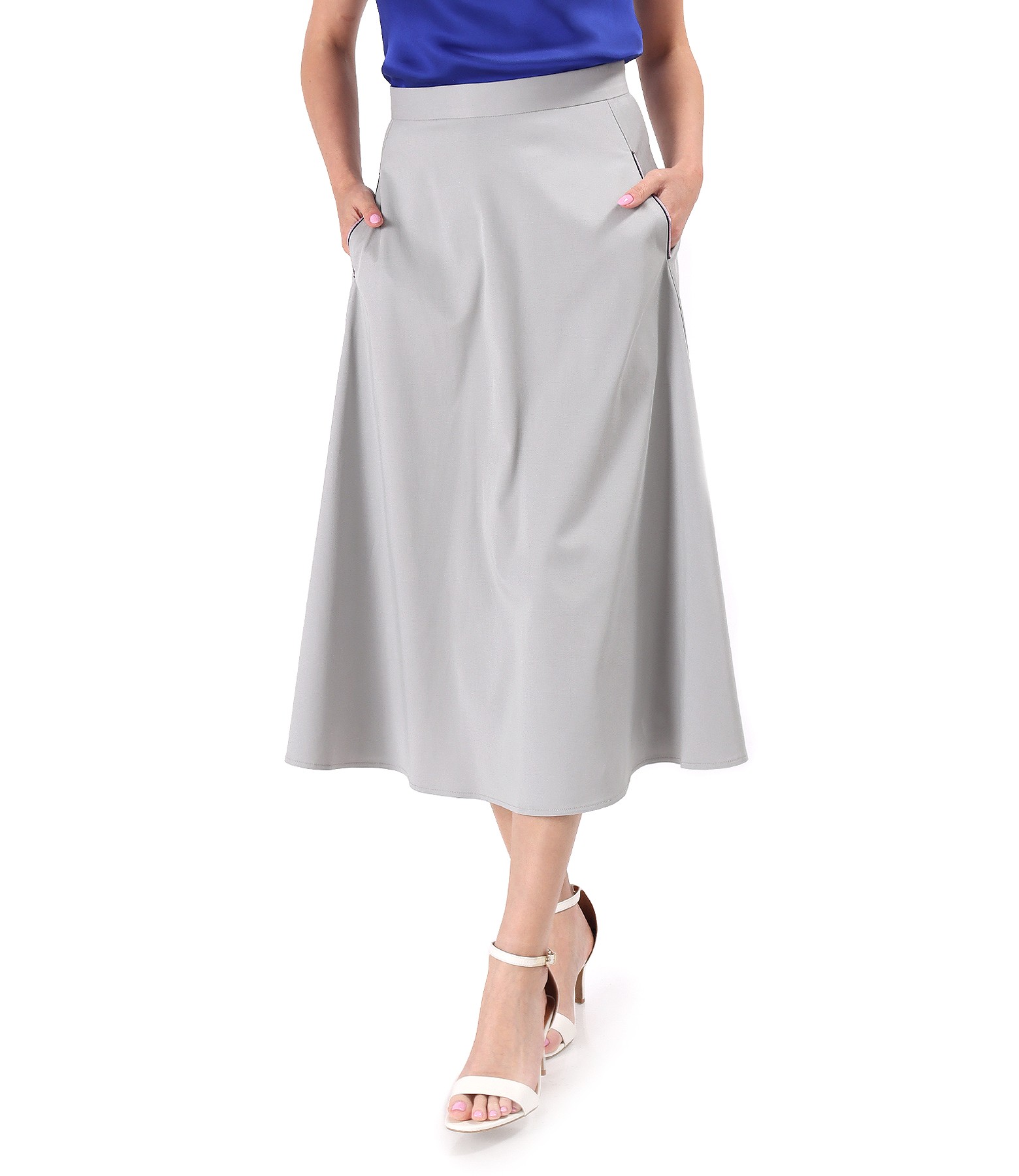 Fusta semiclos din stofa cu tencel si bumbac (Gri), marimea