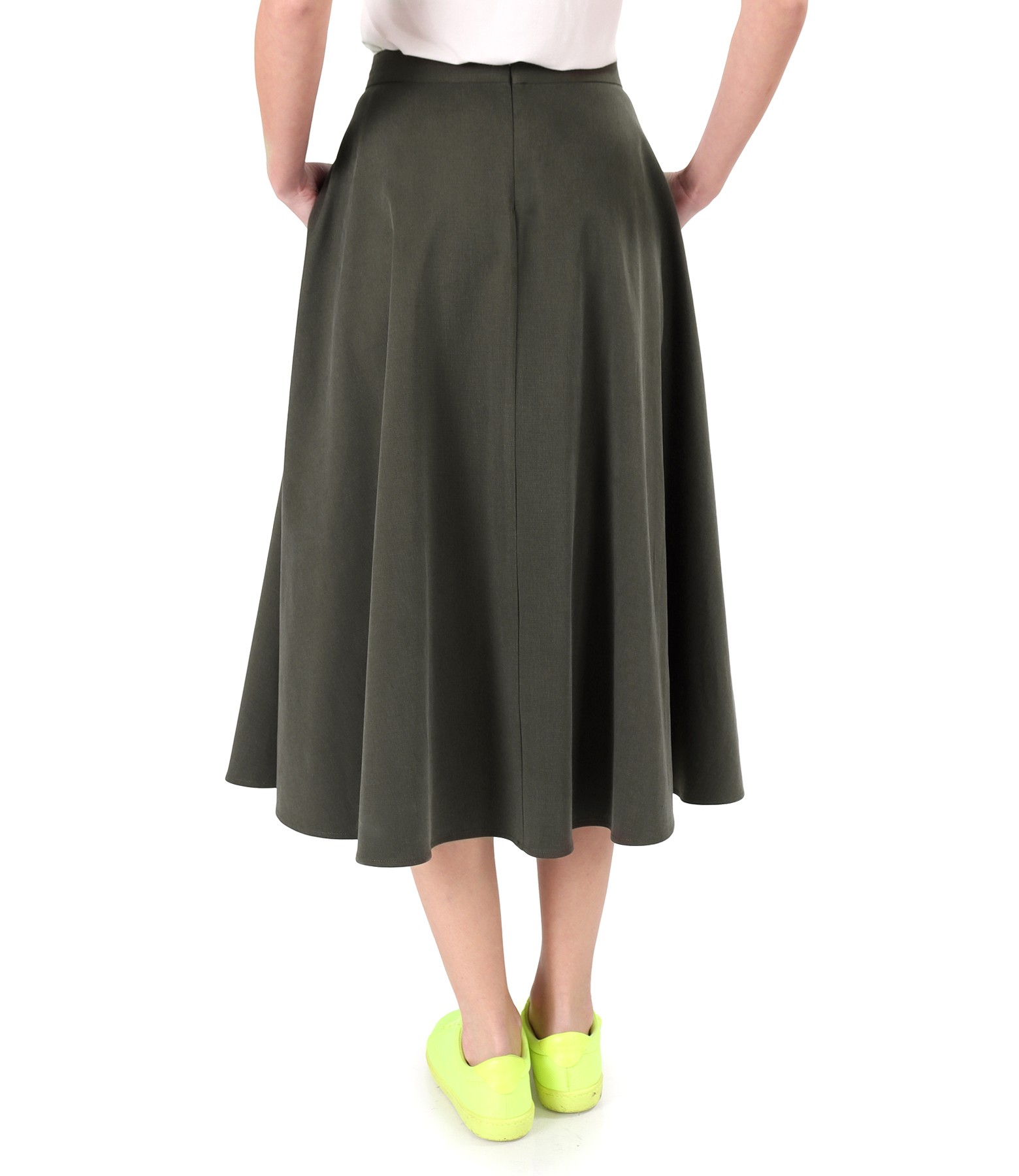 Fusta semiclos din stofa plina din tencel cu bumbac (Kaki), marimea