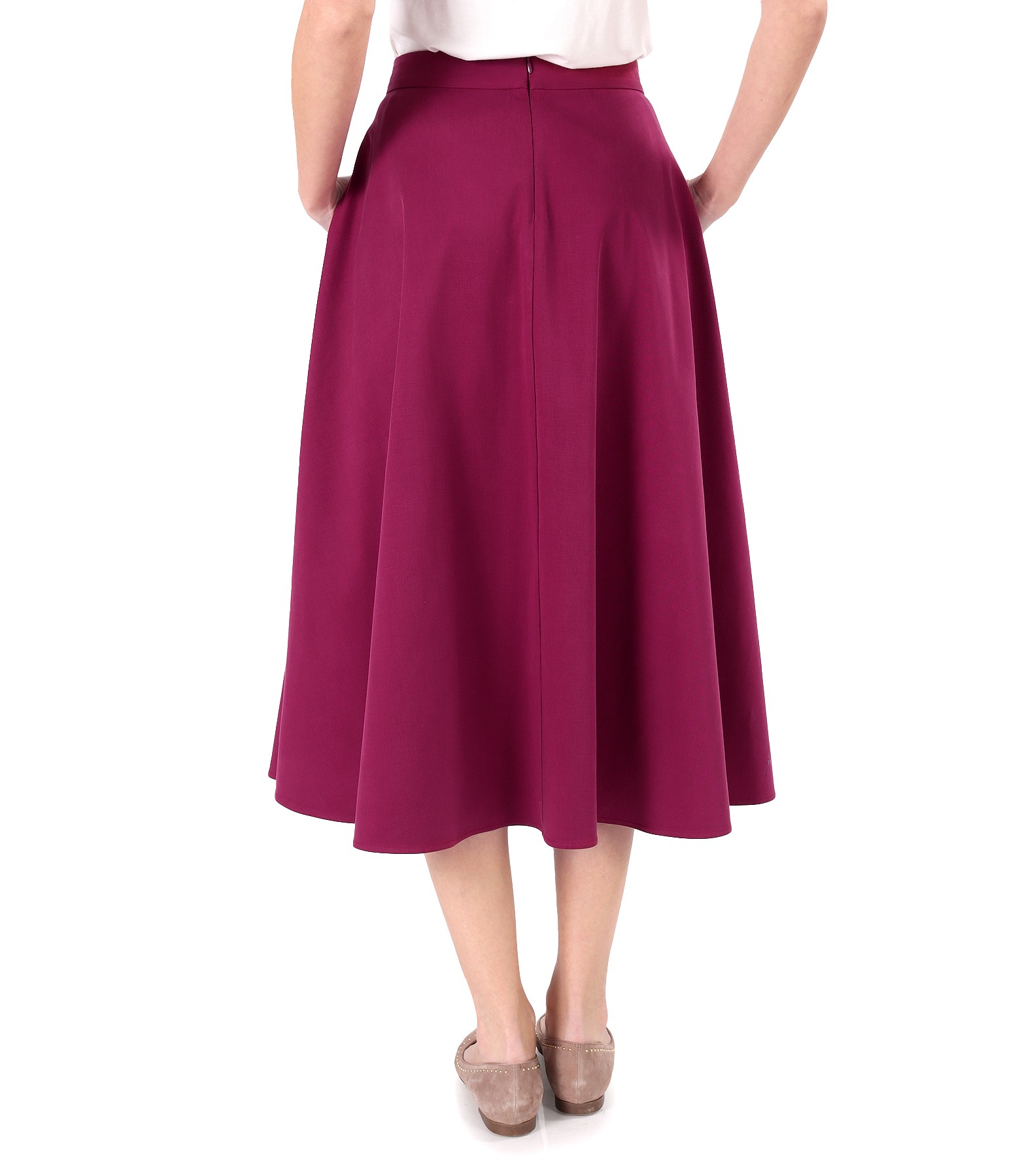 Fusta semiclos din stofa plina din tencel cu bumbac (Magenta), marimea