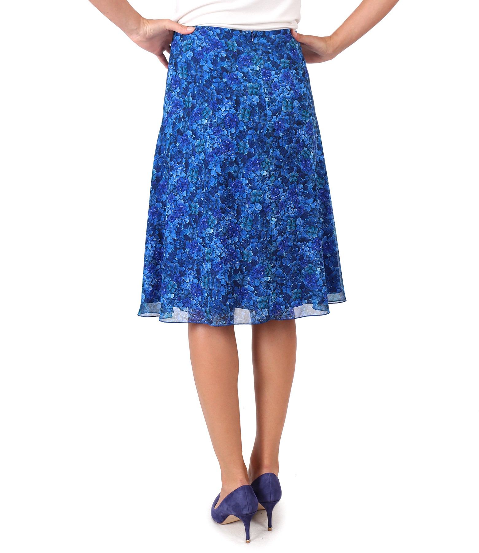Fusta semiclos din voal imprimat cu frunze (Albastru), marimea