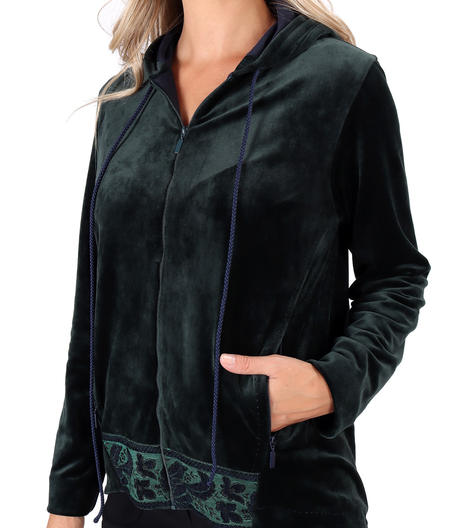 Hanorac din catifea cu pasmanterie pe fata (Verde), marimea