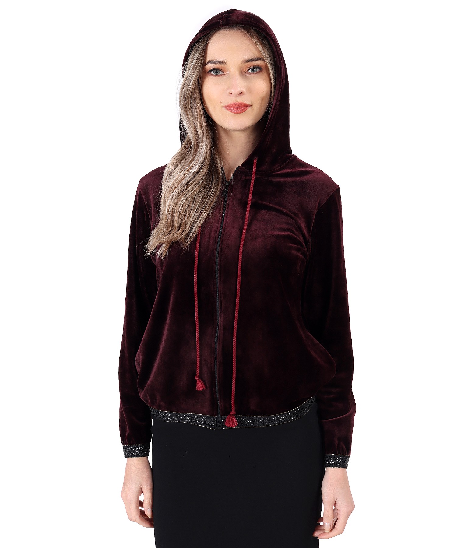 Hanorac din catifea cu terminatie elastica cu cristale (Rosu Grena), marimea