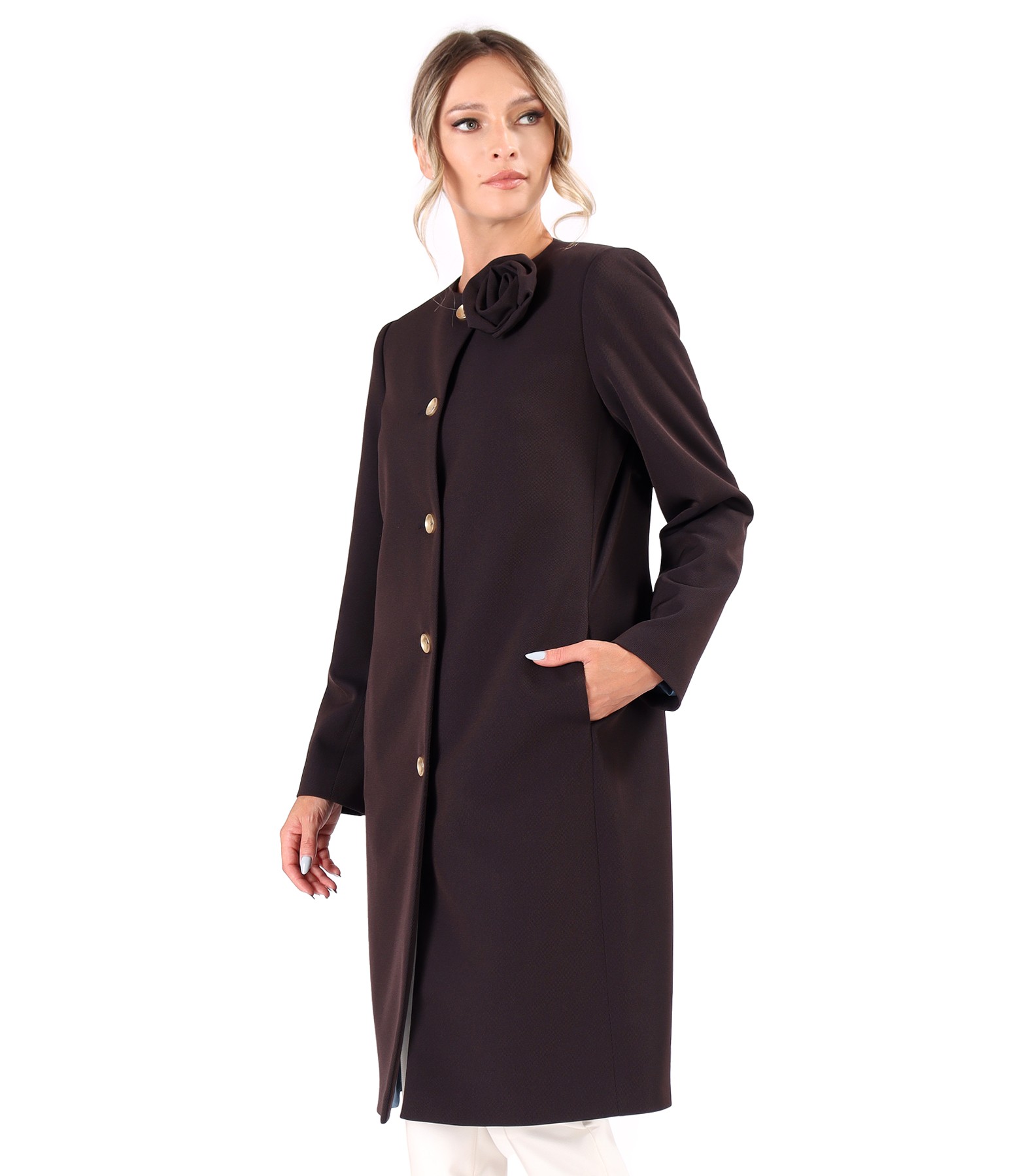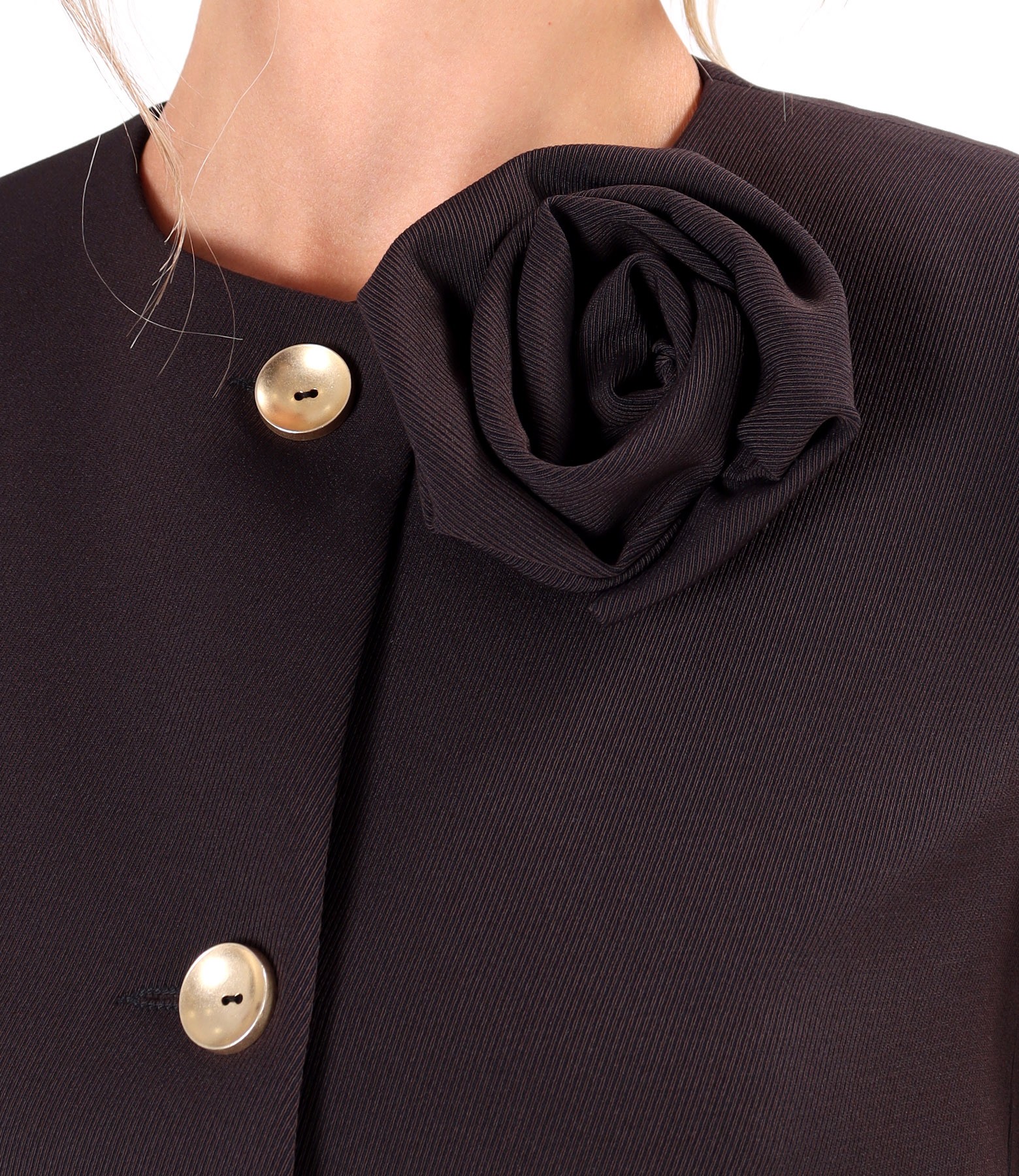 Jacheta eleganta din stofa texturata cu brosa detasabila la decolteu (Negru rosiatic), marimea