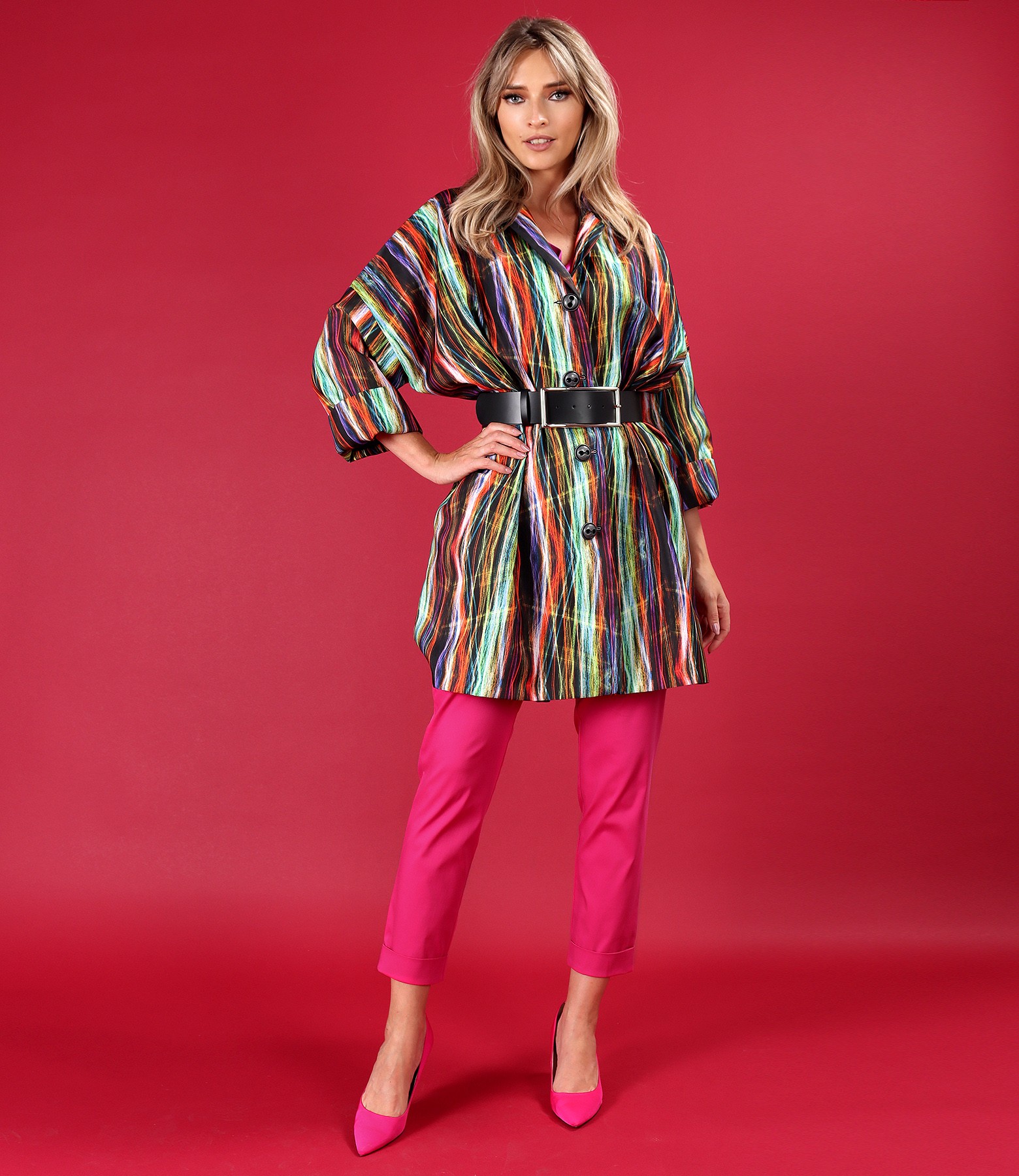Jacheta oversize cu maneci 3/4 din stofa ripsata cu efect satinat (Imprimeu), marimea