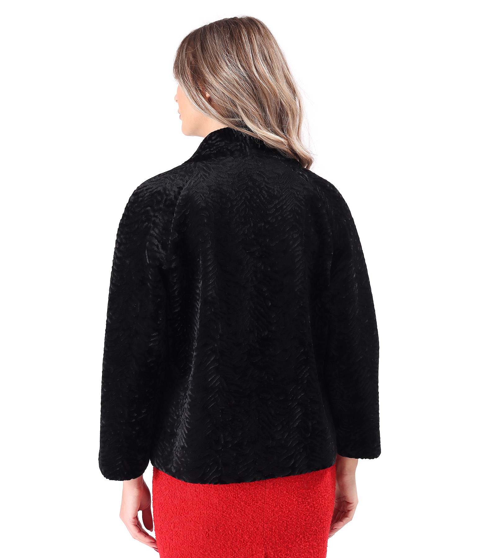Jacheta scurta din blana ecologica cu structura tip astrahan (Negru), marimea