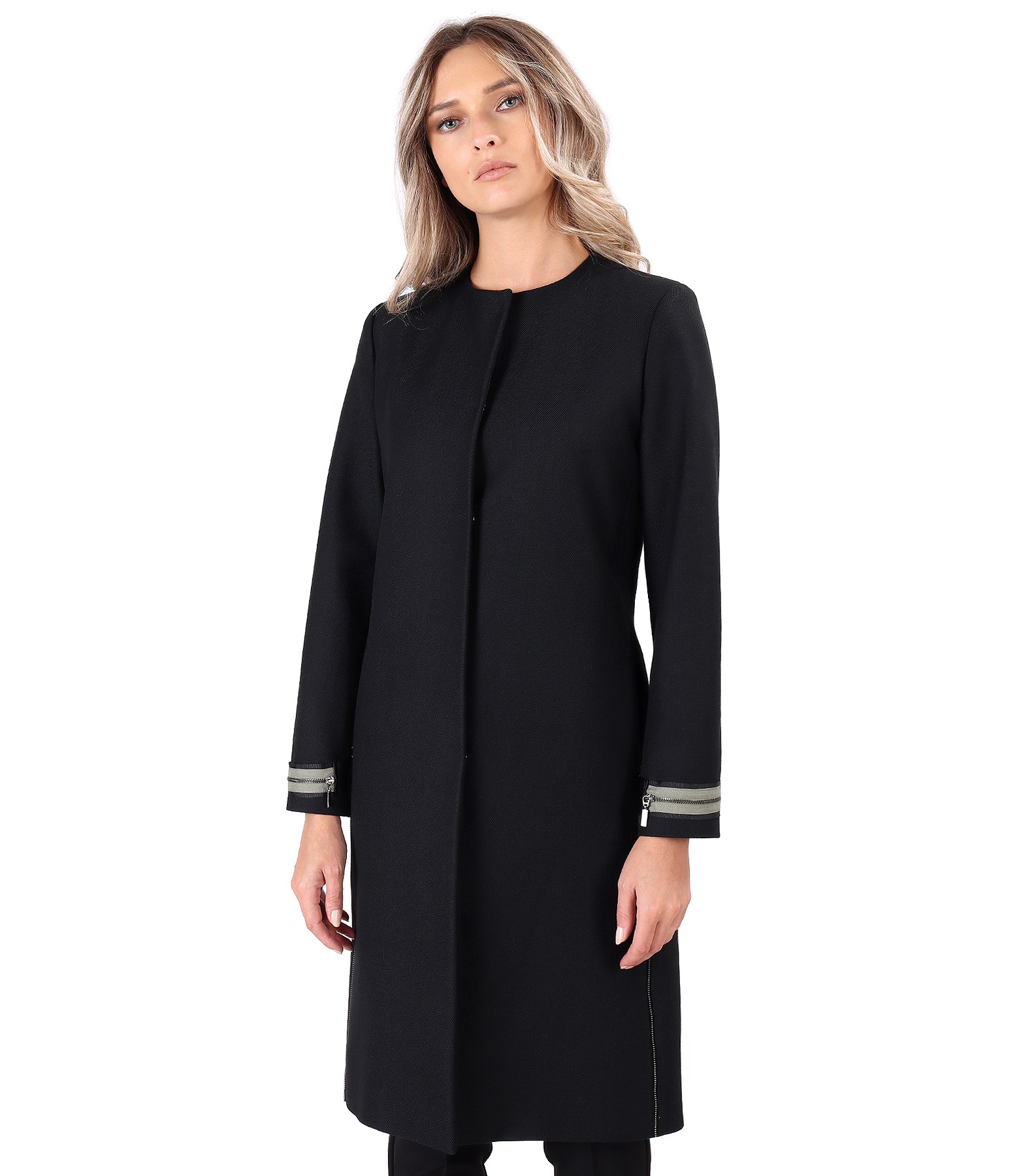 Palton elegant cu lana virgina si fermoare decorative (Negru), marimea
