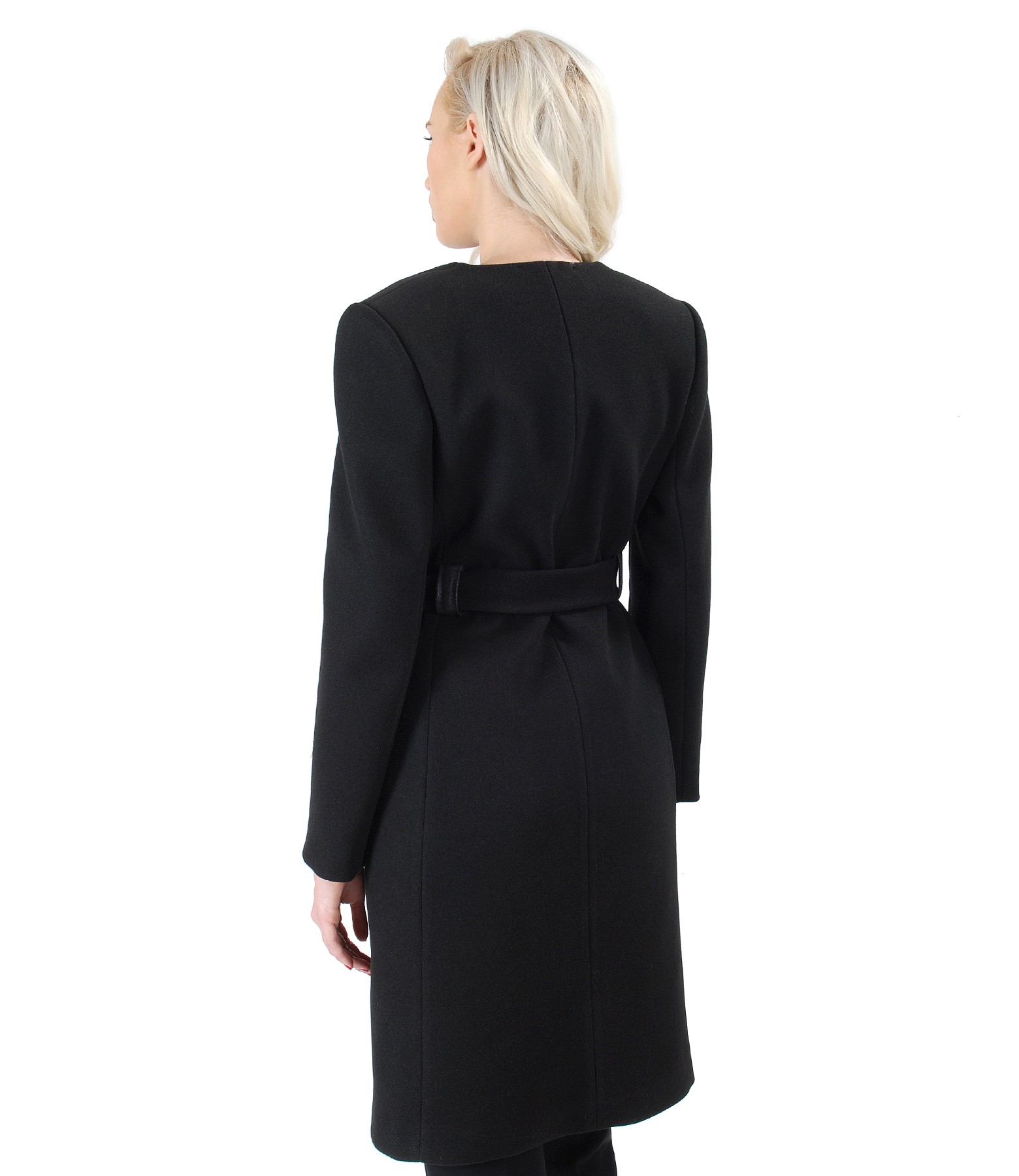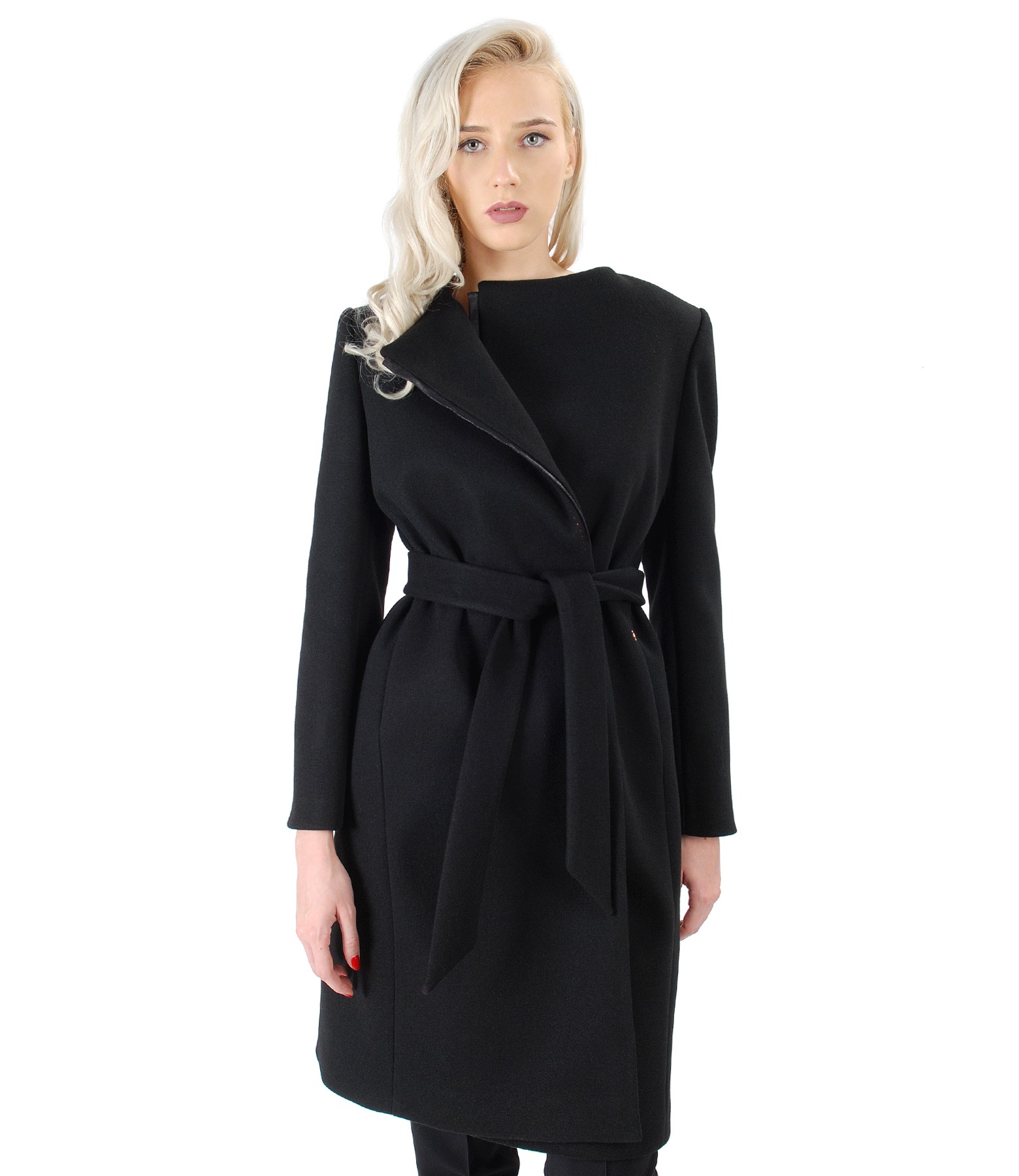 Palton petrecut din stofa elastica groasa cu cordon (Negru), marimea