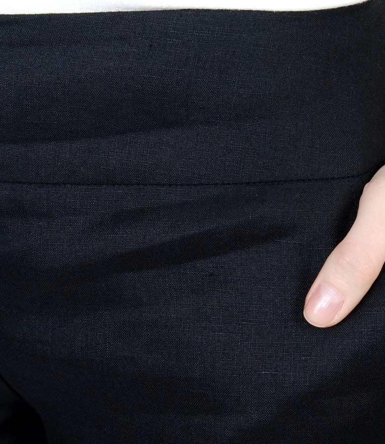 Pantaloni din in cu buzunare (Negru), marimea