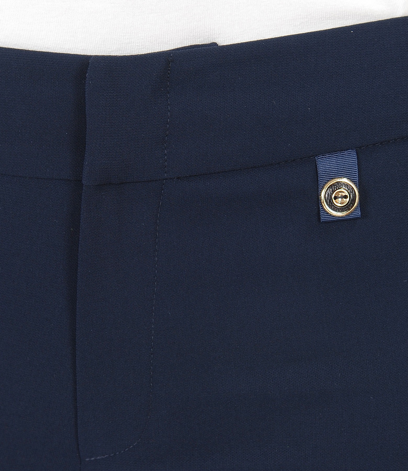 Pantaloni eleganti cu dunga si cu cordon lat in talie. Se inchid cu 2 capse si fermoar normal pe fata.