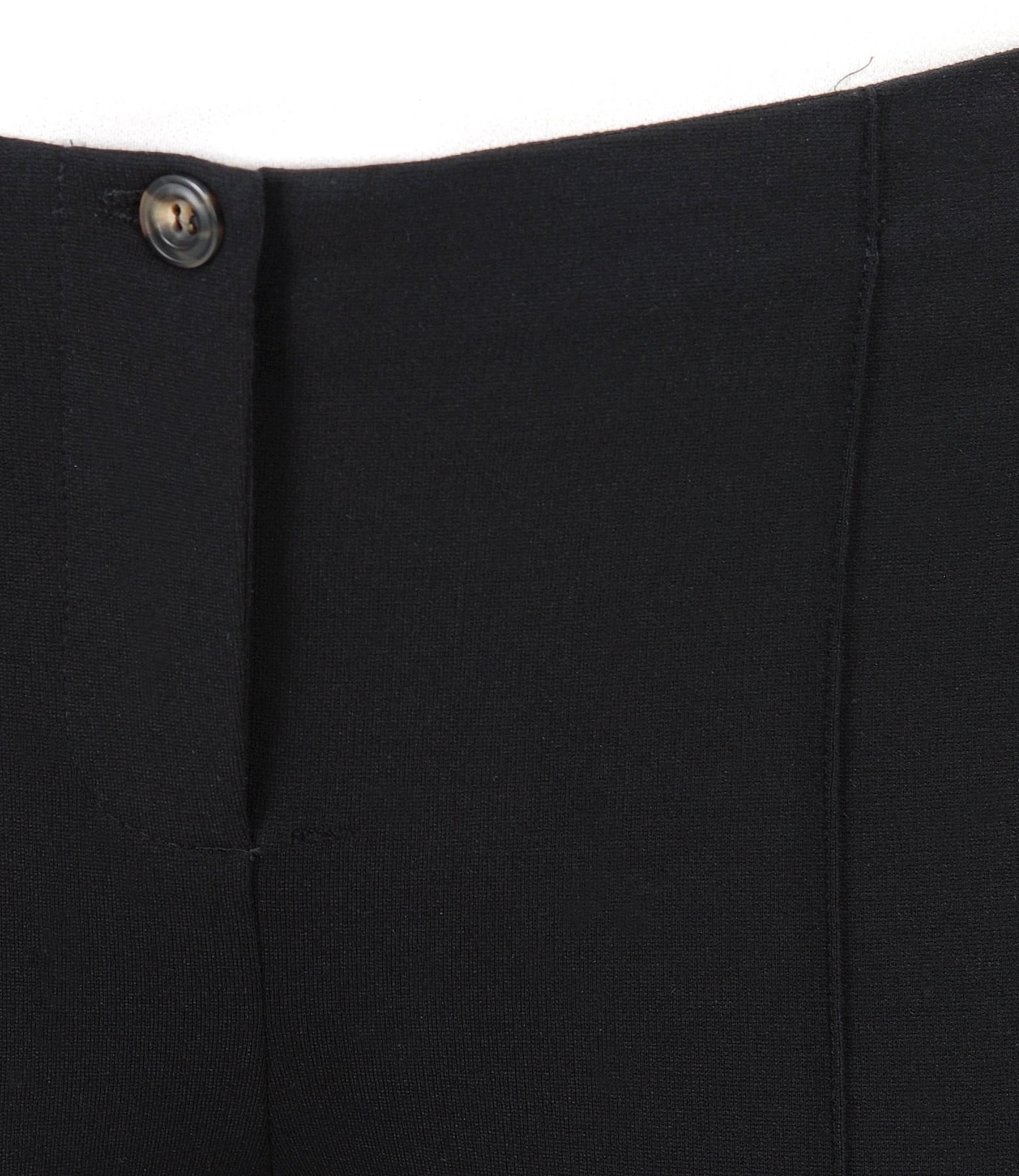 Pantaloni office din jerse elastic gros, cu elastic in talie si dunga cusuta. Se inchid cu fermoar si nasture pe fata.