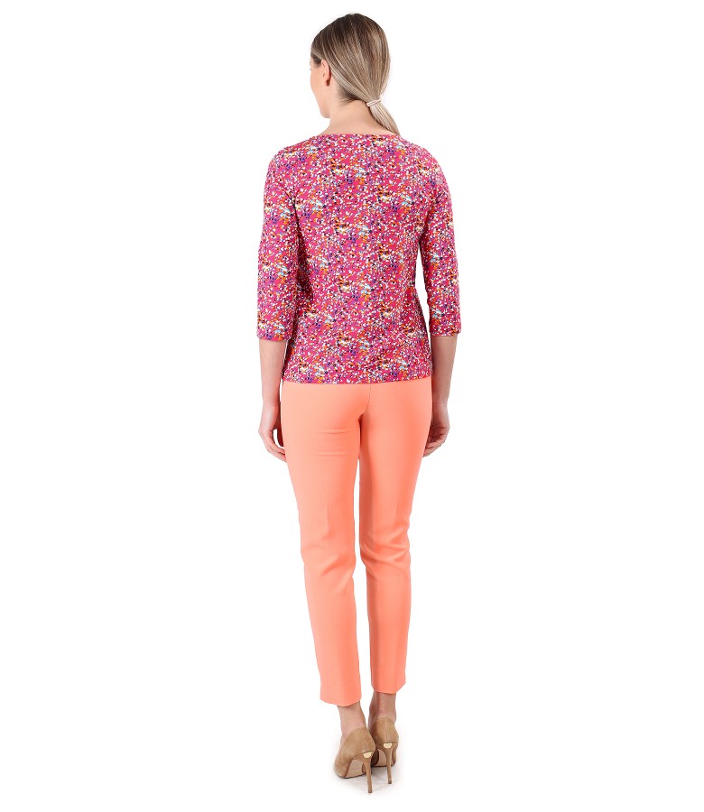 Pantaloni pana cu bluza din bumbac elastic imprimat