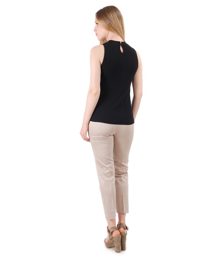 Pantaloni pana cu bluza din jerse raiat fara maneci